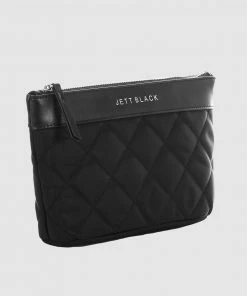 JETT BLACK The Bondi Quilted Clutch Pouch Zip Case Jet Black