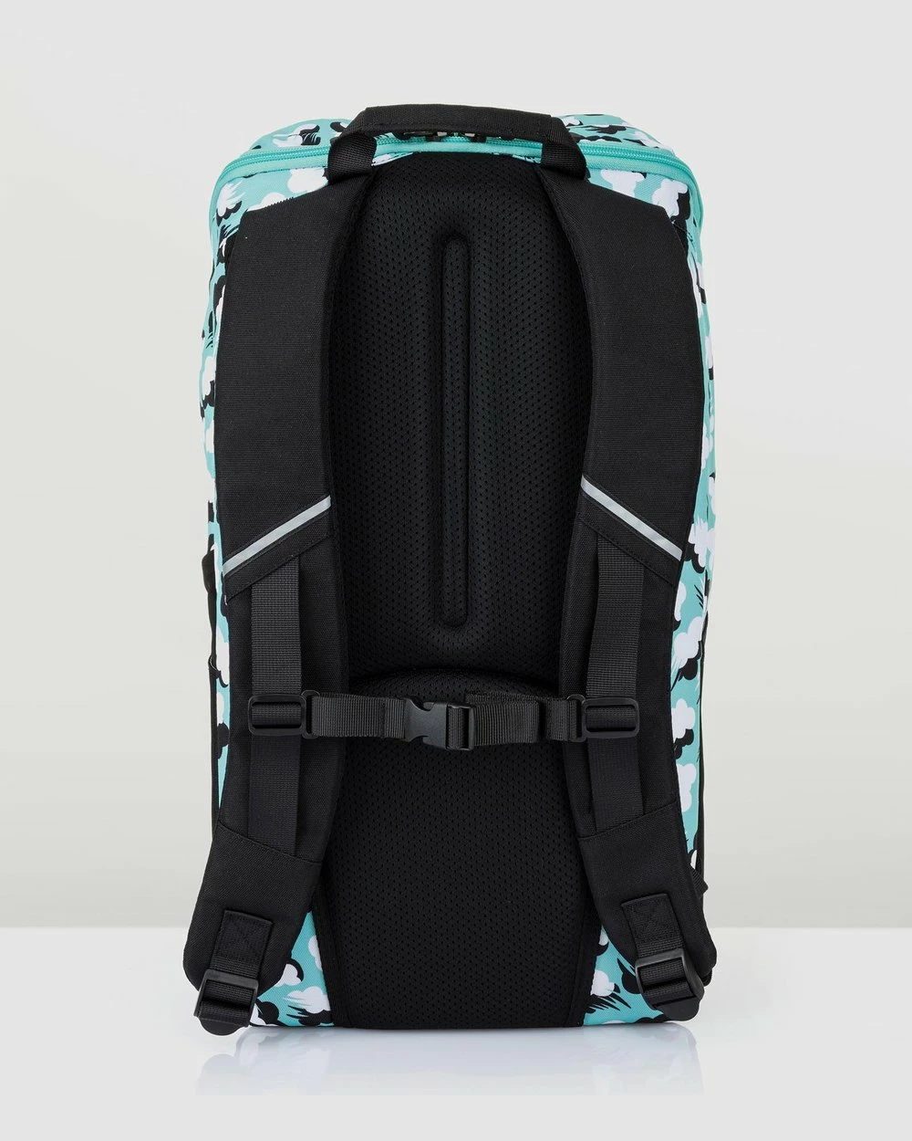 – Turquoise with white print; black contrast