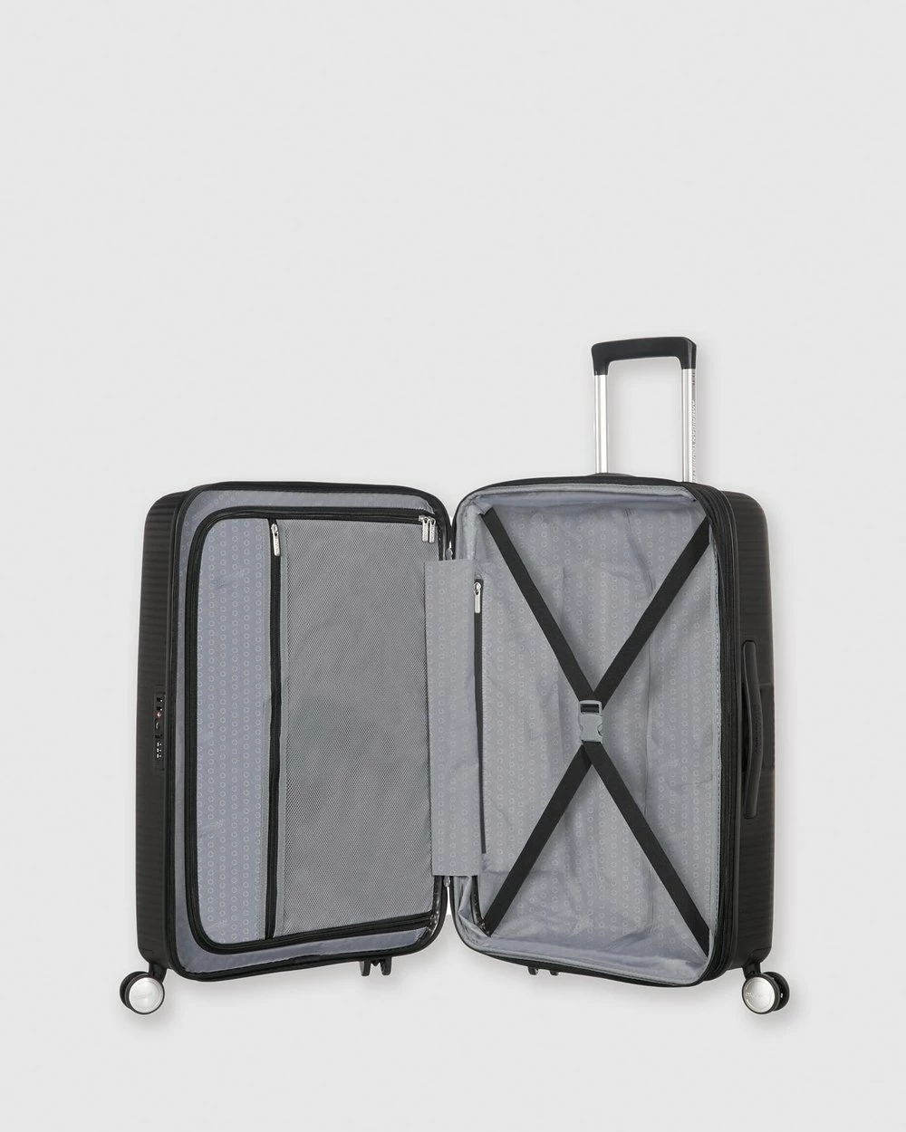 Featuring easy-maneuvering 360-degree spinner wheels, American Tourister‘s Curio Spinner 80/30 suitcase will have your travelling in effortless style.