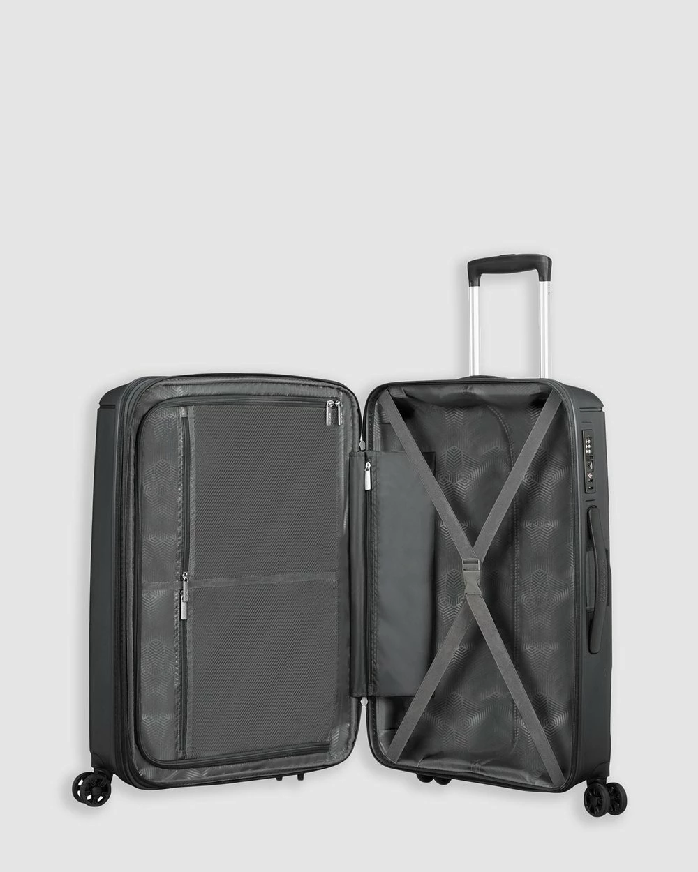Taking your travel ensembles up a notch, American Tourister‘s sleek and refined Sunside Spinner 68/25 Expandable suitcase is fitted with effortless 360 spinner wheels.