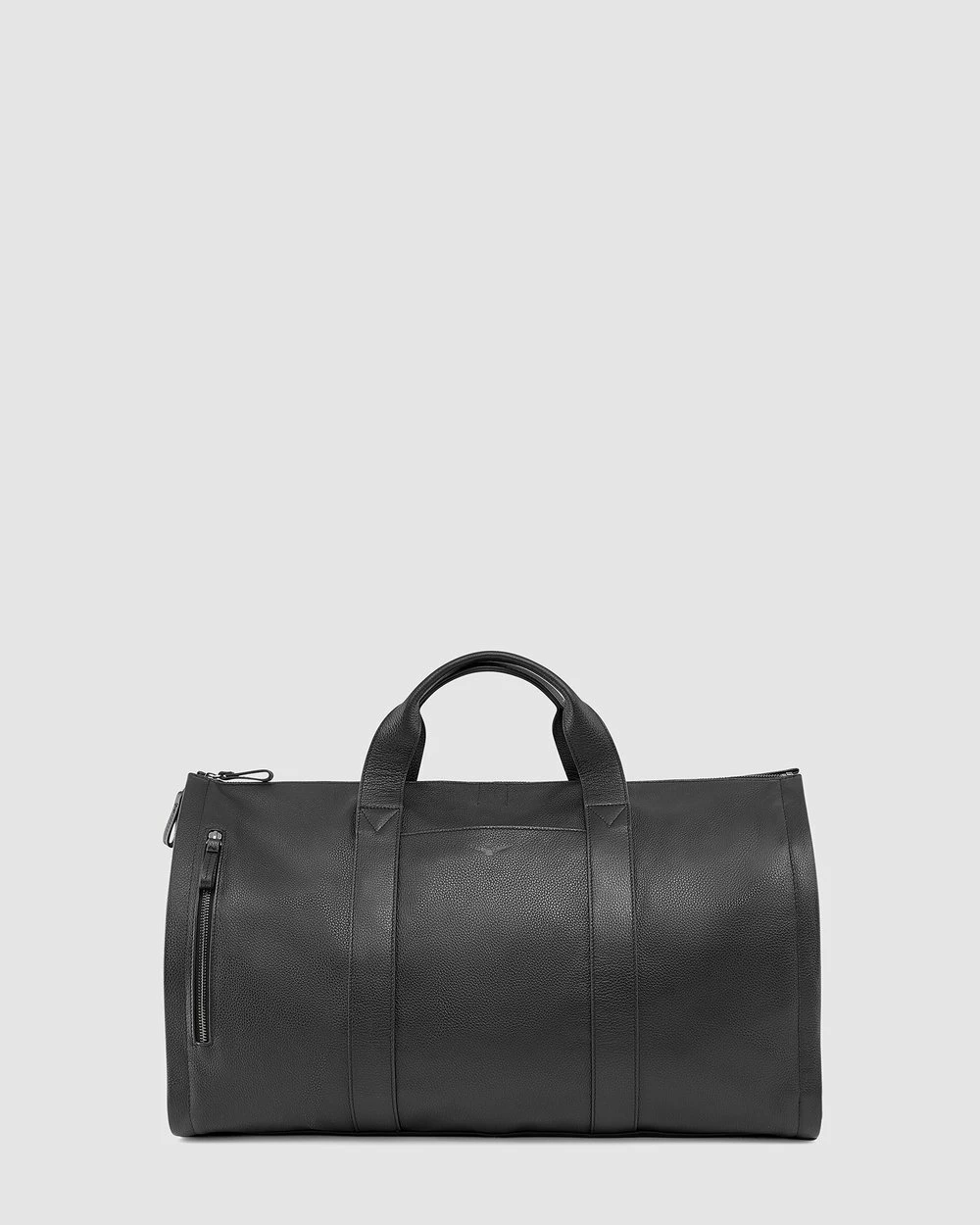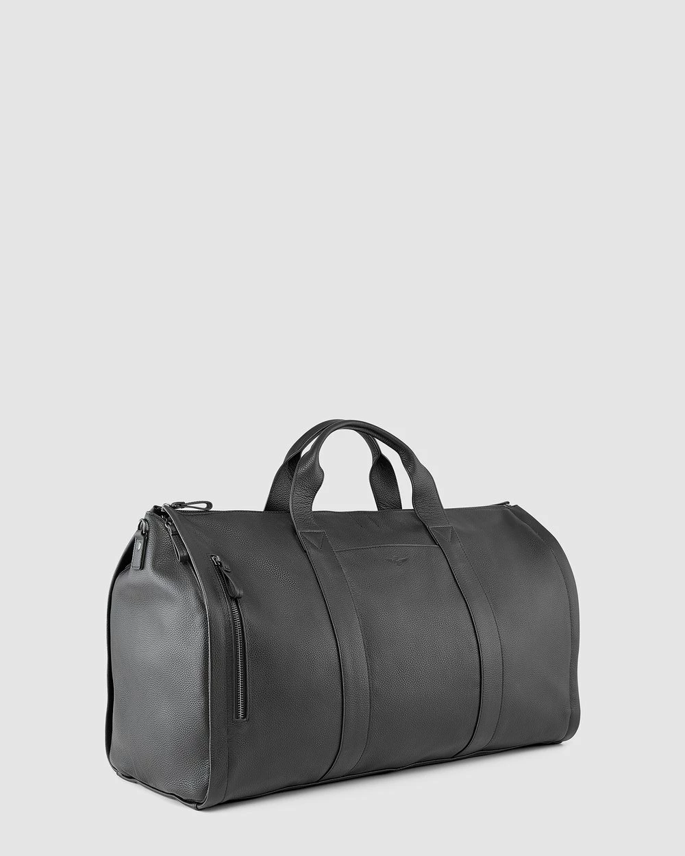 – Measures 37 H x 52 W x 22.5cm D- Black- Weekender- Tumbled Brazilian leather – Zip fastening- Metal hardware- Embellished Aquila logo- Made in China