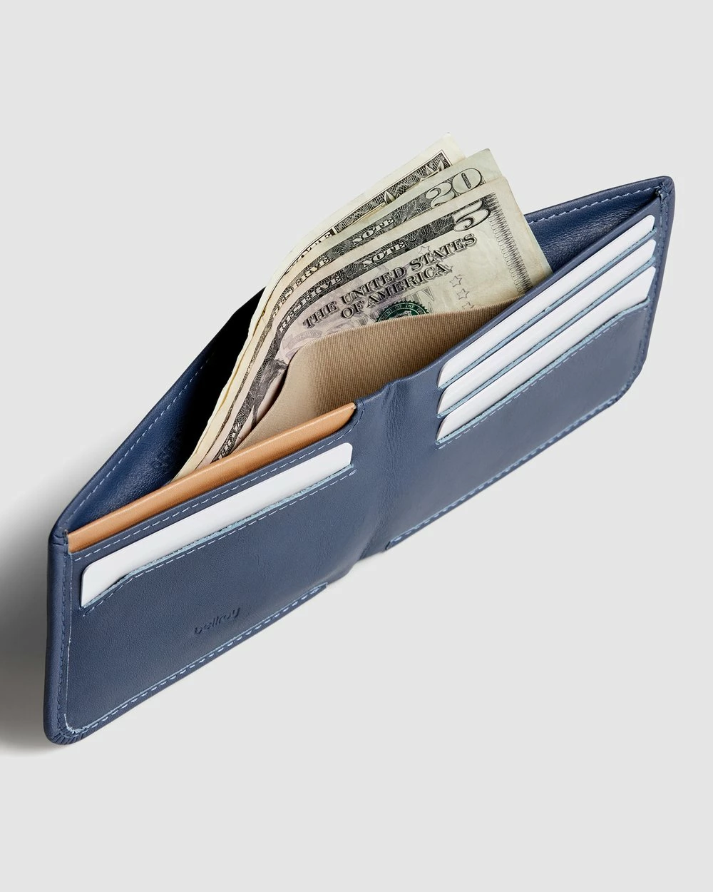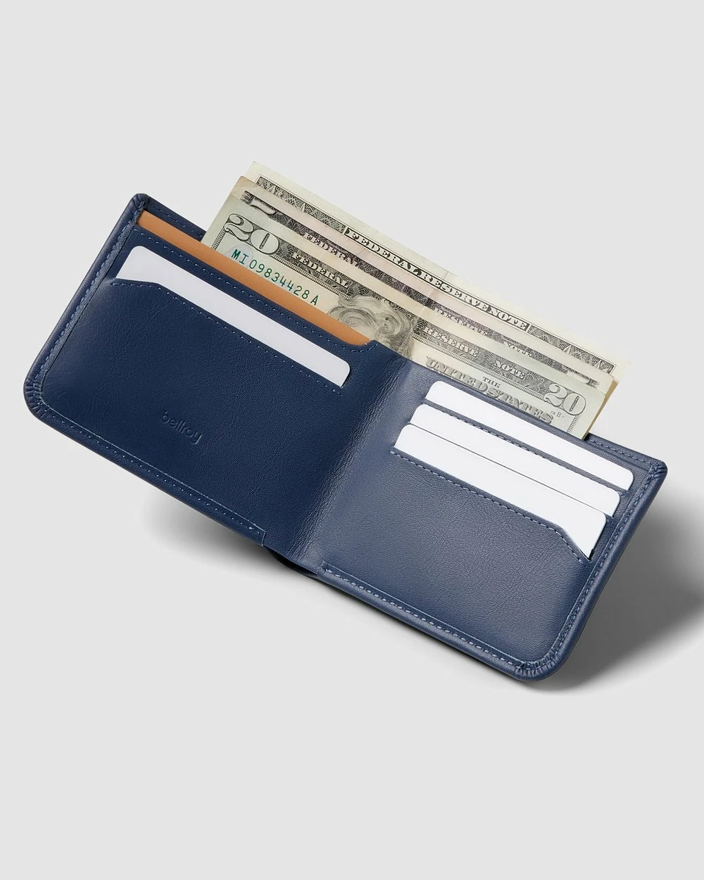 Classic styling with a surprise or two, the Hide & Seek LO by Australian brand Bellroy, is for anyone who wants a little more out of their wallet. Keep your cards and cash in the main sections, and a secret stash of notes or business cards under the hidden flap. Great for jet-setters who want to keep their currencies separate or their cash hidden from prying eyes. RFID protection in the lining adds further security to your valuables. Itβs a popular slim leather wallet for men.