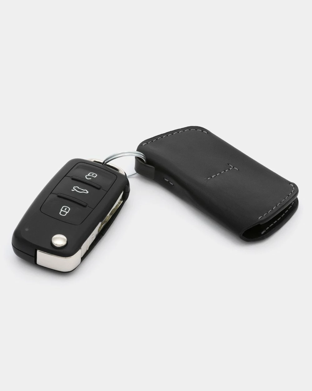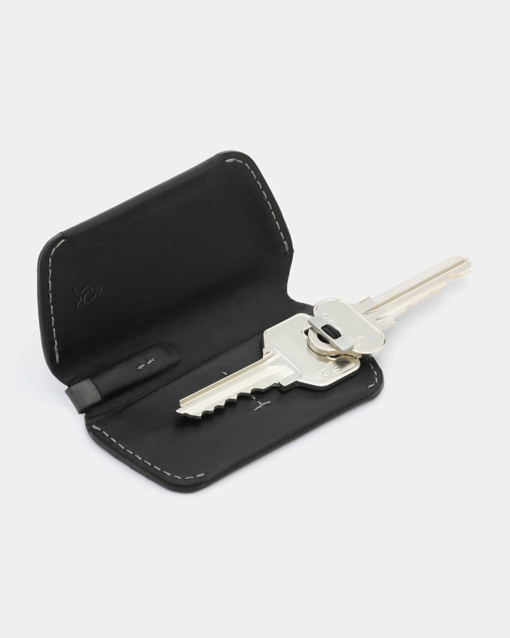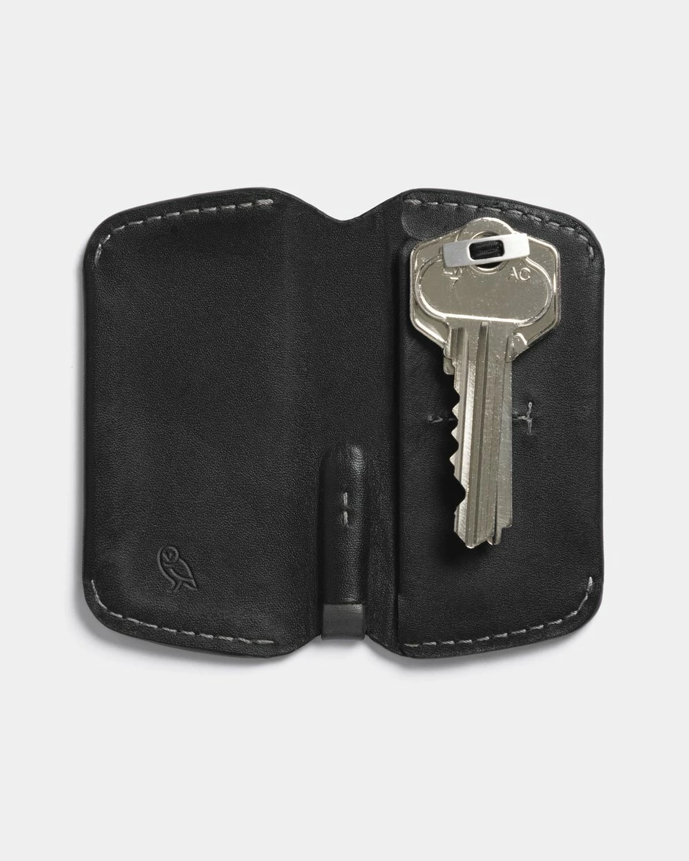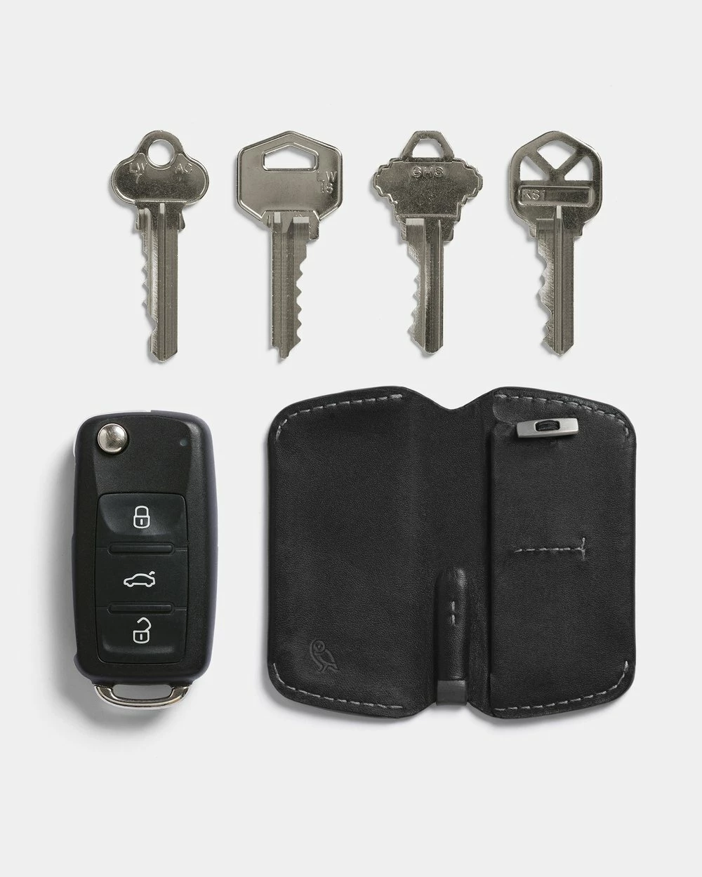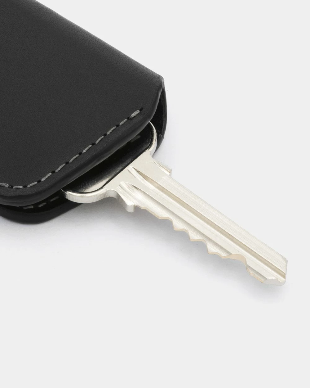 The Key Cover from Australian brand Bellroy is designed to control your bundle of keys, and protect your pockets from the jagged edges. Holding up to four keys inside the tapered leather fold, it snaps shut with one hand and slips into slim pockets or small compartments in your bag. Your keys hinge out much like a pocket-knife, with a little added give from the elastic toggle. A leather loop on the outside also offers a spot for your car key. Cure the tangle, with this leather Key Cover.