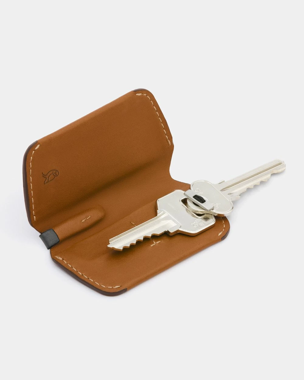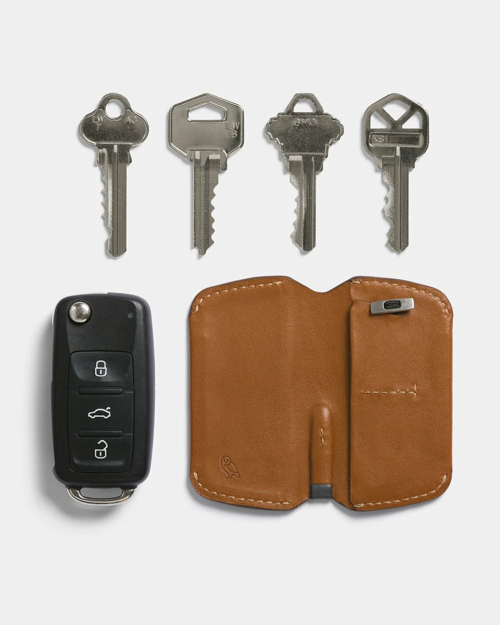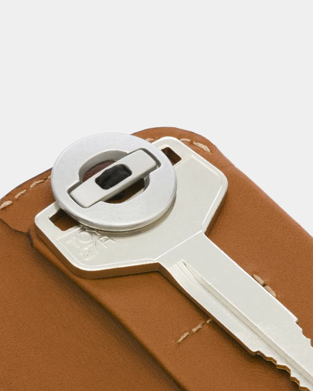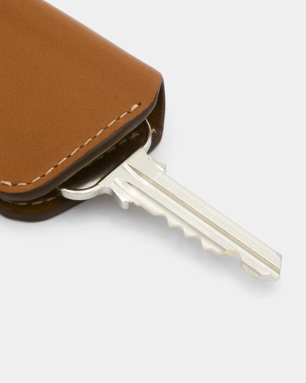 The Key Cover from Australian brand Bellroy is designed to control your bundle of keys, and protect your pockets from the jagged edges. Holding up to four keys inside the tapered leather fold, it snaps shut with one hand and slips into slim pockets or small compartments in your bag. Your keys hinge out much like a pocket-knife, with a little added give from the elastic toggle. A leather loop on the outside also offers a spot for your car key. Cure the tangle, with this leather Key Cover.