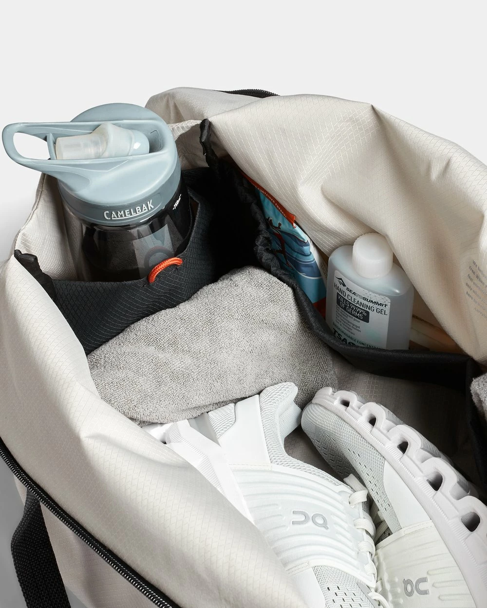 The Lite Duffel by Australian carry brand Bellroy is part of a range of lightweight bags designed for play, and made from a durable, recycled diamond ripstop thatβs 3X lighter than their usual fabrics. A traditional duffel bag with a twist, the Lite Duffel is rugged enough for adventure, but light enough to let you move like the wind. The innovative zipper gives you ultra-wide access to whatβs inside, while a quick-access pocket on the front keeps your everyday essentials neatly at hand. Internal pockets provide just enough organization, without feeling fussy. And the padded shoulder strap and soft-edge handles keep things comfortable, all day long. So you can move freely, whether youβre headed to the gym, or hitting the road for a weekend getaway.