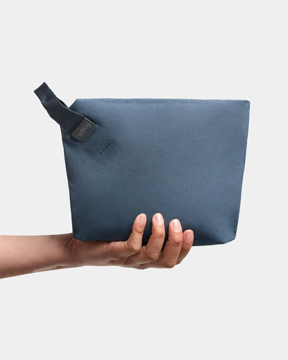 The Standing Pouch by Australian carry brand Bellroy is a versatile little carry-all for the smaller stuff in your life. Its clever base shape lets it stand upright when full, while its minimalist shape and exterior help it fit in almost anywhere. The wide mouth opening lets you see and access whatβs inside, without unpacking everything. It effortlessly expands as you fill it, but compresses flat when itβs empty. Flexible pockets inside let you quickly stow all kinds of little items, and the soft grab loop means you can carry it with one finger. Itβs an easy way to keep little things in one place, so you can zip, grab and go.
