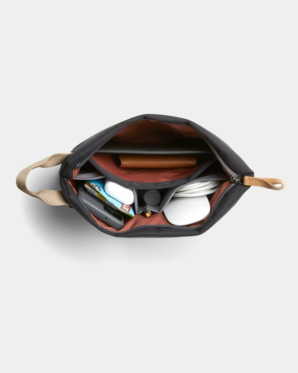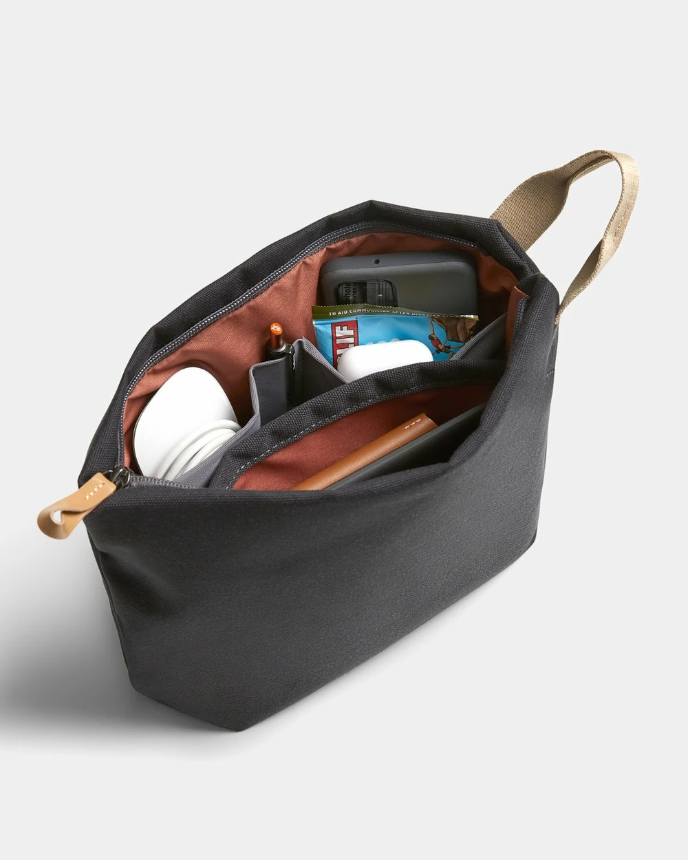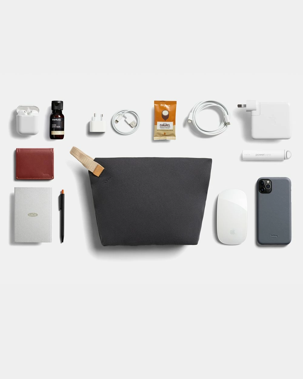 The Standing Pouch Plus by Australian carry brand Bellroy is a generously sized pouch that gives you flexible storage for smaller daily items, on your desktop, in your bag or on weekends away. Its clever base shape lets it stand upright when full, while its minimalist shape and exterior help it fit in almost anywhere. The wide mouth opening lets you see and access whatβs inside, without unpacking everything. It effortlessly expands as you fill it, but compresses flat when itβs empty. Flexible pockets and a spacious interior hold all shapes and sizes, and the soft grab loop means you can carry it with one finger. Itβs an easy way to keep little things in one place, so you can zip, grab and go.