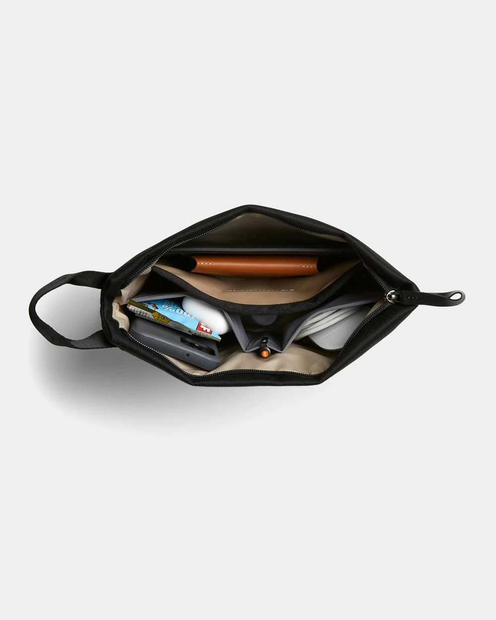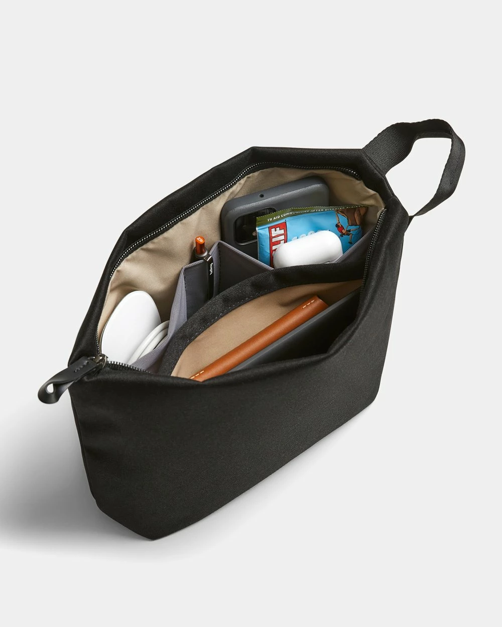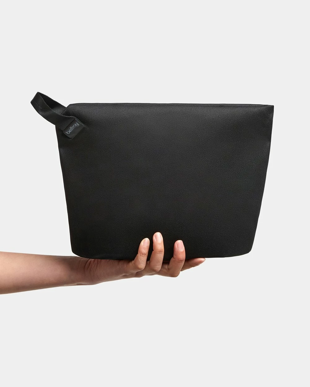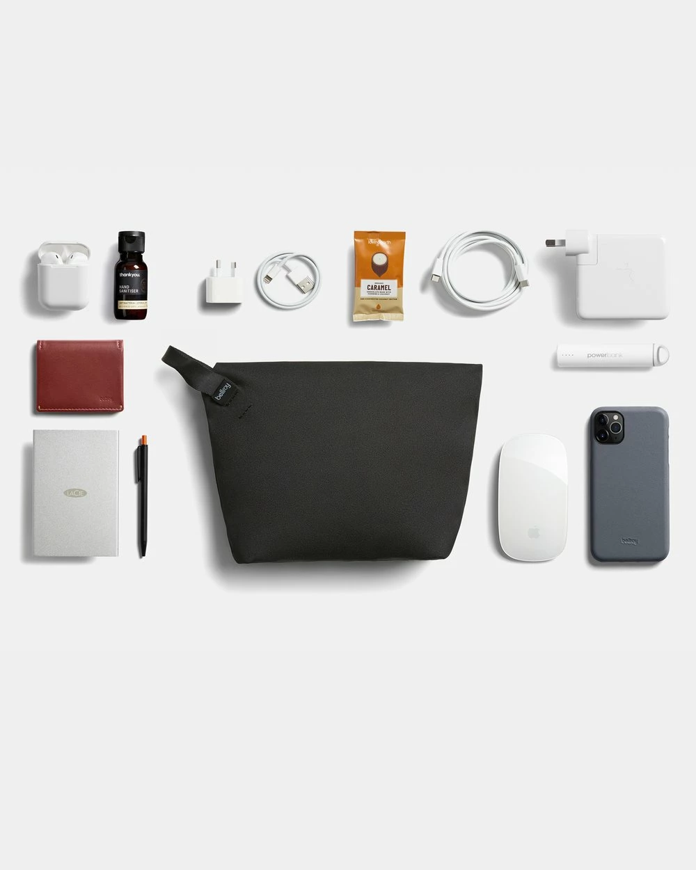The Standing Pouch Plus by Australian carry brand Bellroy is a generously sized pouch that gives you flexible storage for smaller daily items, on your desktop, in your bag or on weekends away. Its clever base shape lets it stand upright when full, while its minimalist shape and exterior help it fit in almost anywhere. The wide mouth opening lets you see and access whatβs inside, without unpacking everything. It effortlessly expands as you fill it, but compresses flat when itβs empty. Flexible pockets and a spacious interior hold all shapes and sizes, and the soft grab loop means you can carry it with one finger. Itβs an easy way to keep little things in one place, so you can zip, grab and go.