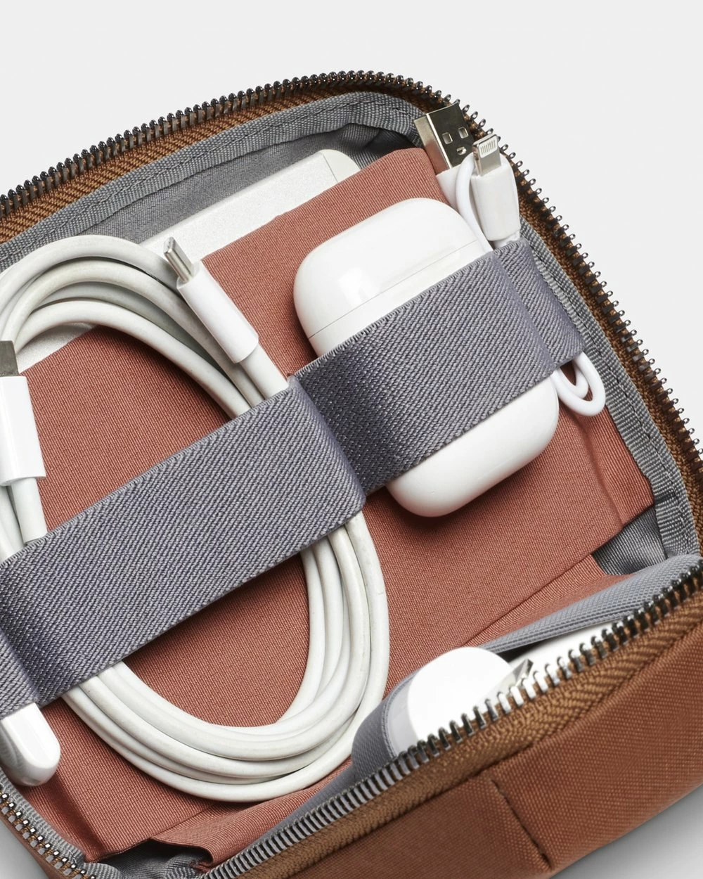 – Fits all your tech accessories in one slim pouch- Zips out flat for easy accessMagnetic slip pocket fits a slim power bankS- Stretch mesh pockets store a charging brick and standard mouse- Elastic loops organize cables, earbuds and moreSmooth-action zips for easy access- Softshell body lets it squeeze into tight spacesMade from water-resistant, recycled fabric- Backed by our 3-year warranty