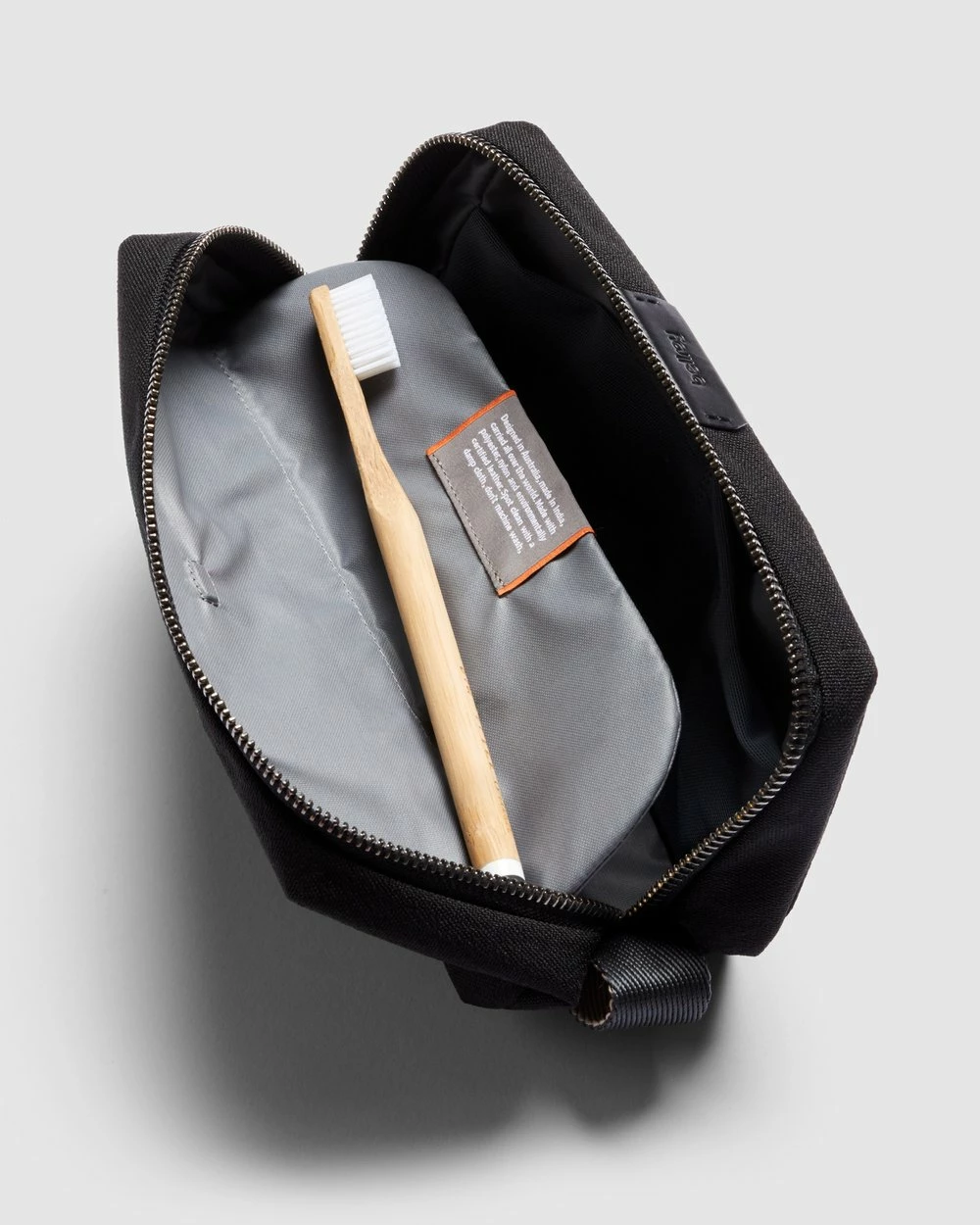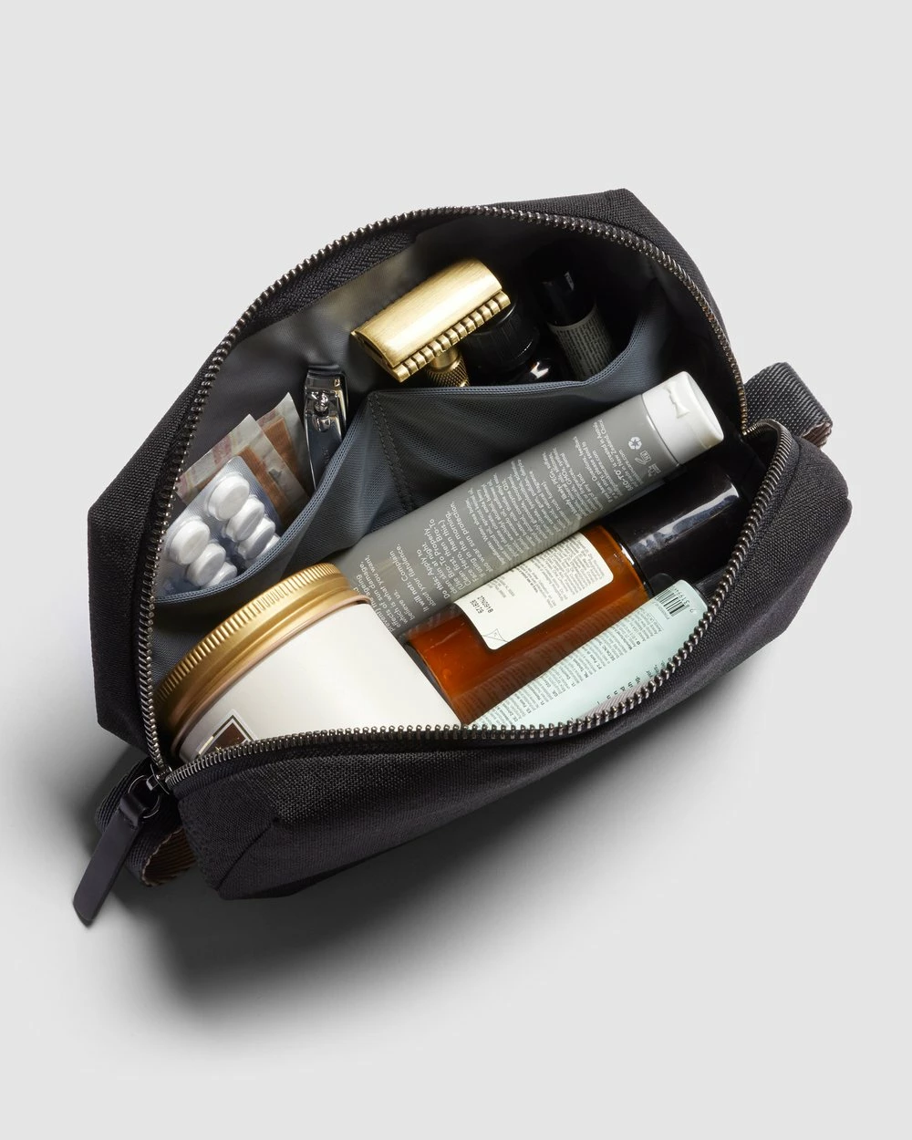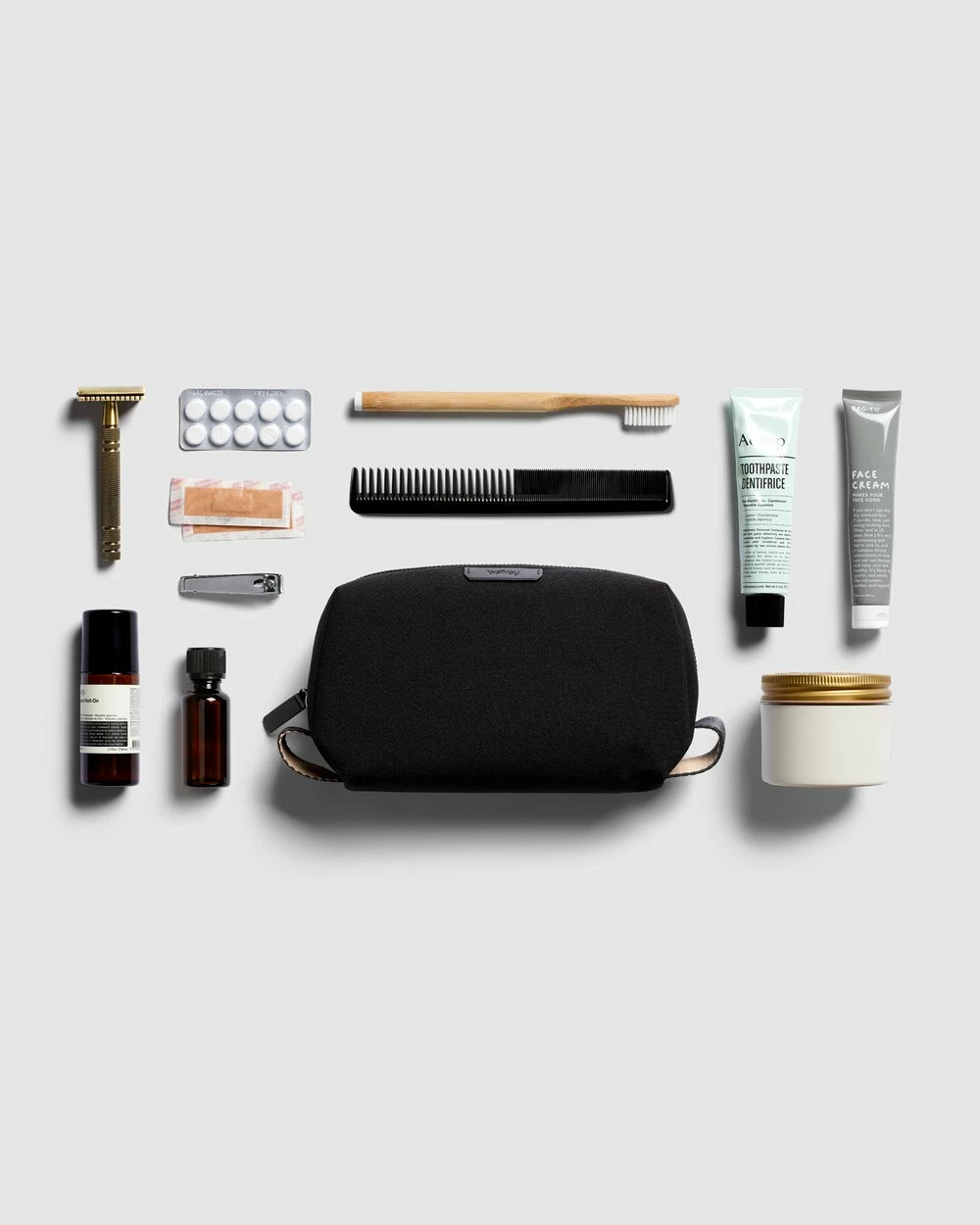 Keep your grooming items as well-kempt as you with the Dopp Kit by Australian carry brand Bellroy. Interior mesh pockets keep everything in place, including a toothbrush sleeve with magnetic closure to ensure things stay clean when travelling. The water-resistant lining makes it easy to wipe away any spills, while the streamlined shape offers an always neat look thatβs easy to fit in your bag. Great for business travel and personal adventures alike.