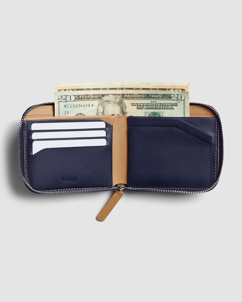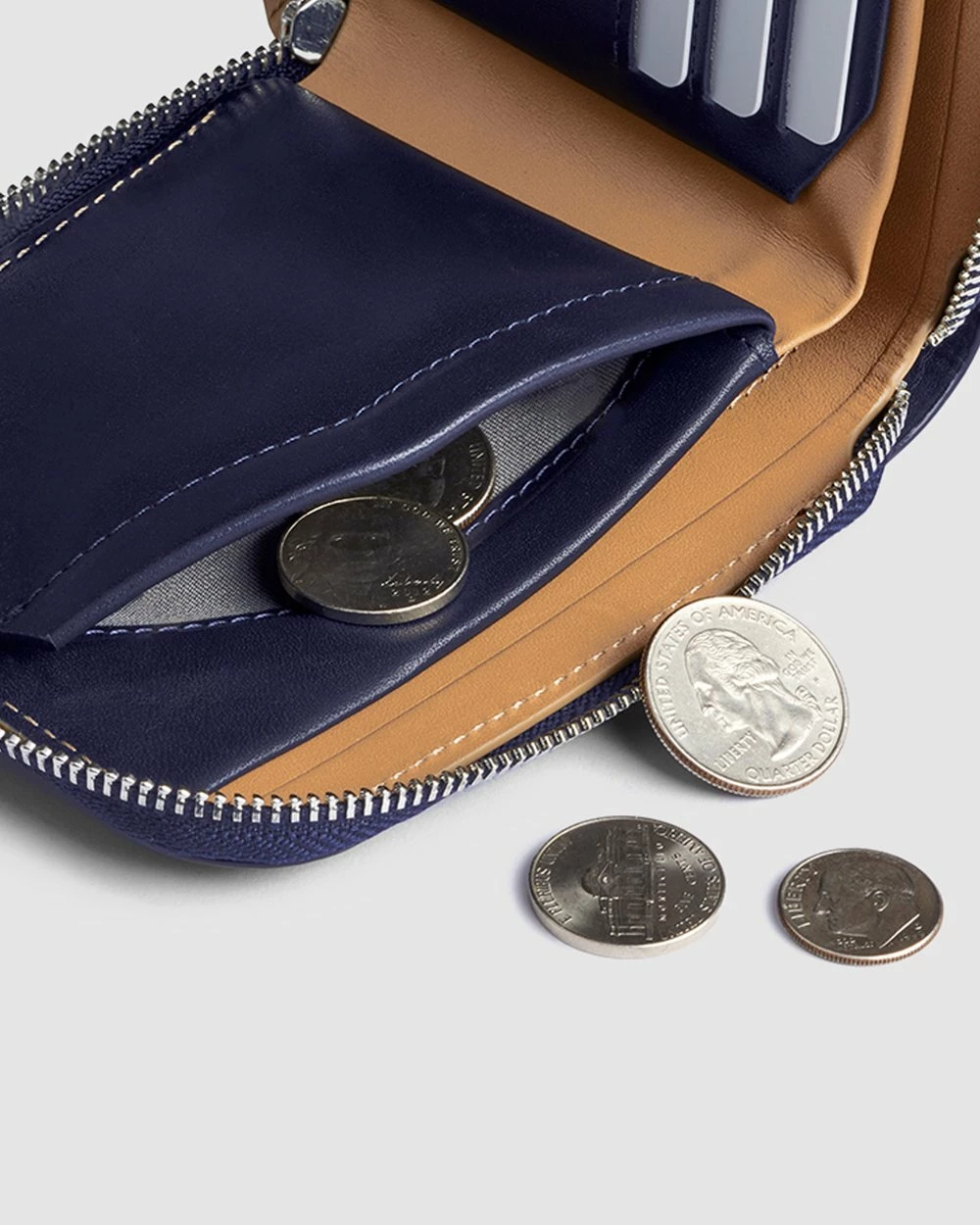 The Zip Wallet by Australian design brand Bellroy fits your cards, notes, coins and an extra SIM, into a stylish, pocket-friendly zip. The pop-and-peek magnetic coin pouch gives you easy one-handed access to your change. Itβs clever storage, zipped into a classic design.