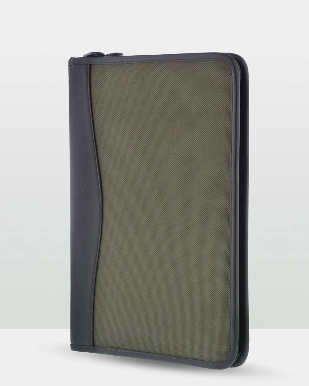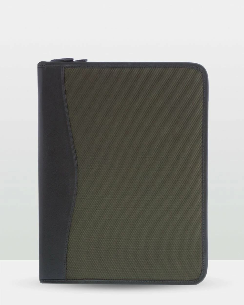 The River Leather and Canvas zip around document sleeve by Cobb & Co is a simple and stylish document, laptop/tablet holder. Durable and lightweight is handcrafted in pebbled leather and canvas panels. Great to keep organised and it looks sharp at the office.