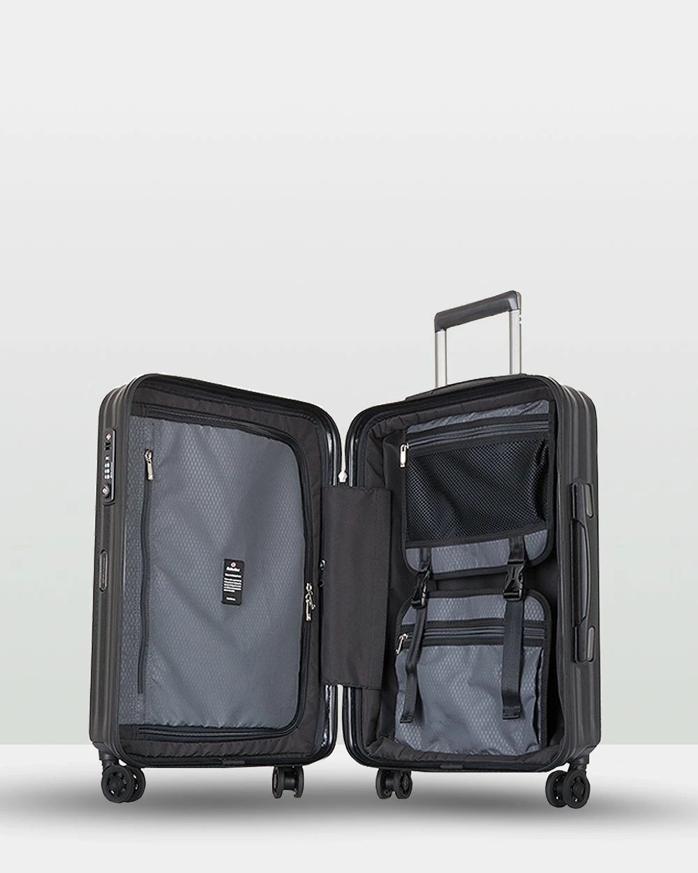 Auckland Echolac Large Case by Echolac has been crafted from resilient anti-scratch polycarbonate material with a unique emboss to emulate a leather finish. The square pattern design exterior is scratch resistant, shock absorbent, and remarkably durable. Designed for optimal capacity and packed with many features, Auckland has waterproof zippers, a washable interior and multiple internal storage compartments for organised packing. Additionally, the Hinamoto Japanese design wheels are built for swift manoeuvrability, making travelling with Auckland a comfortable and easy.