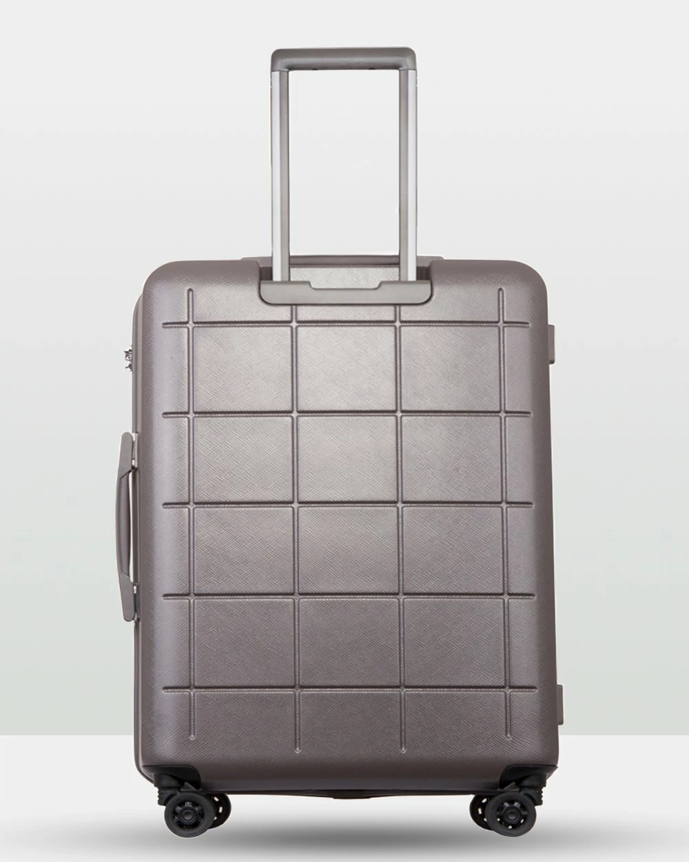 Auckland Echolac Medium Case by Echolac has been crafted from resilient anti-scratch polycarbonate material with a unique emboss to emulate a leather finish. The square pattern design exterior is scratch resistant, shock absorbent, and remarkably durable. Designed for optimal capacity and packed with many features, Auckland has waterproof zippers, a washable interior and multiple internal storage compartments for organised packing. Additionally, the Hinamoto Japanese design wheels are built for swift manoeuvrability, making travelling with Auckland a comfortable and easy.