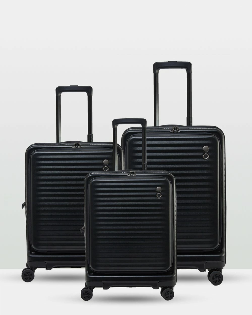 Birmingham Echolac 3 Piece Luggage Set by Echolac features a unique shell design that has been manufactured from Covestro Makrolon raw materials for ultimate impact and scratch resistance. The new Super Stack interior is designed for stacking, saving space, and easy organisation with its additional internal pockets and compartments. The cabin size has been optimised for convenience with its DropTop front storage that is discreetly integrated into the exterior design for both security and a sleek look.