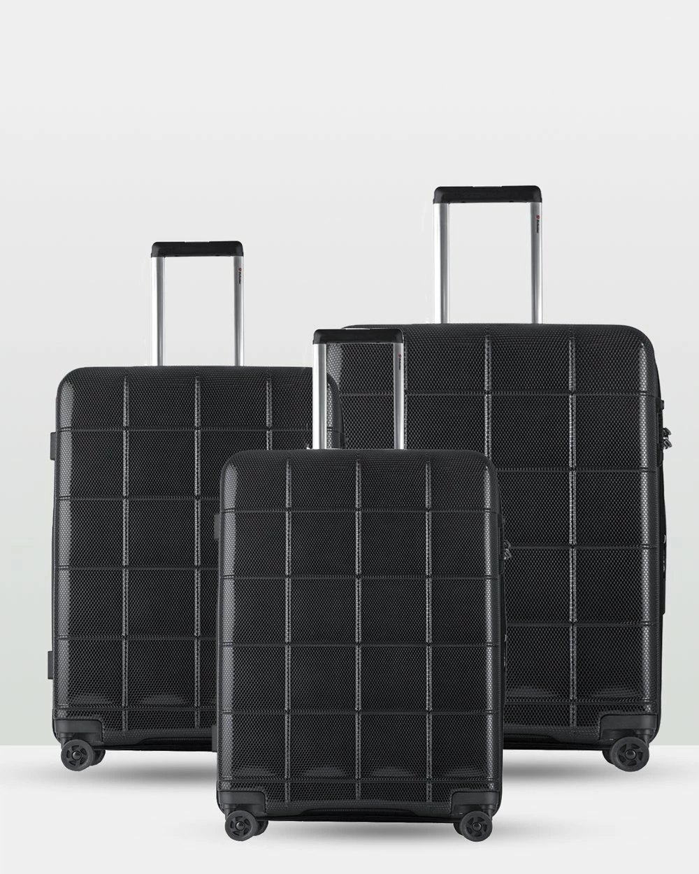 Cape Town Echolac 3 Piece Luggage Set by Echolac Japan combines superior strength honeycomb polycarbonate with its signature ultra lightweight technology to create this modern luggage piece. The ultra durable honeycomb cubed shell creates reinforces Durbanβs expandable frame, and creates a powerfully scratch and shock resistant exterior. Internally, Durban features a divider pad, mesh pocket storage, and cross elastic ribbons for securing items.