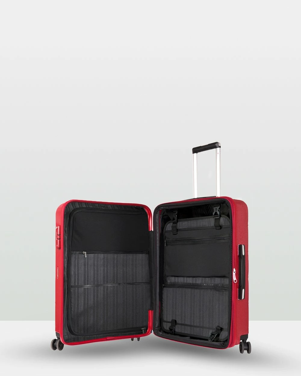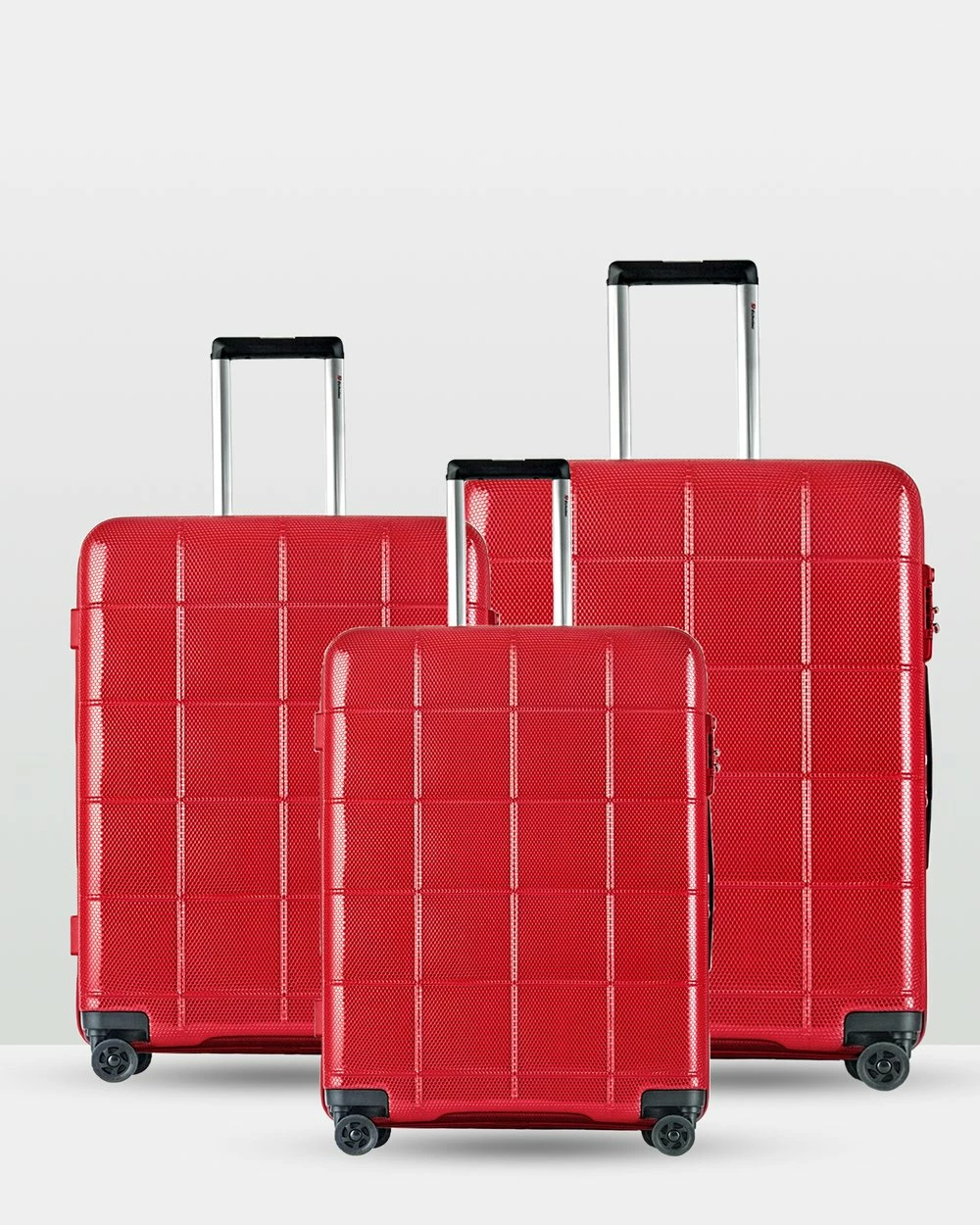 Cape Town Echolac 3 Piece Luggage Set by Echolac Japan combines superior strength honeycomb polycarbonate with its signature ultra lightweight technology to create this modern luggage piece. The ultra durable honeycomb cubed shell creates reinforces Durbanβs expandable frame, and creates a powerfully scratch and shock resistant exterior. Internally, Durban features a divider pad, mesh pocket storage, and cross elastic ribbons for securing items.