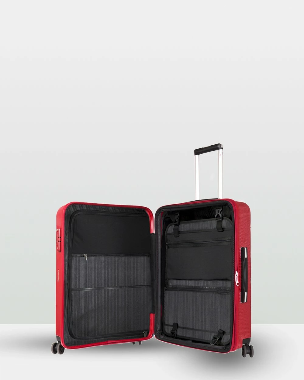 Cape Town Echolac On Board Case by Echolac Japan combines superior strength honeycomb polycarbonate with its signature ultra lightweight technology to create this modern luggage piece. The ultra durable honeycomb cubed shell creates reinforces Durbanβs expandable frame, and creates a powerfully scratch and shock resistant exterior. Internally, Durban features a divider pad, mesh pocket storage, and cross elastic ribbons for securing items.