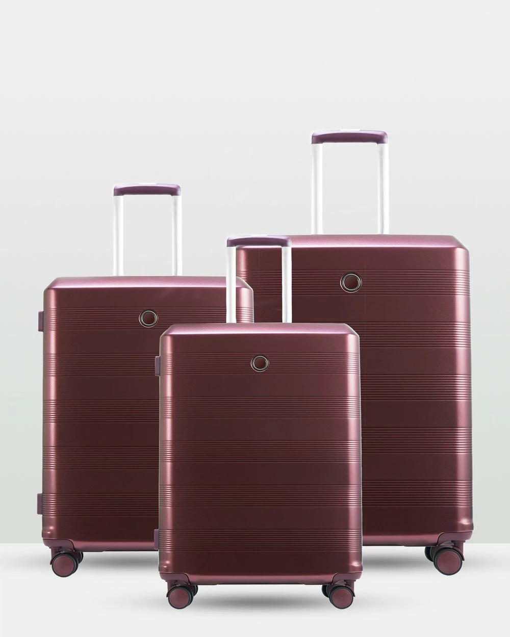 Denver Echolac 3 Piece Set by Echolac Japan has been constructed from polycarbonate material for ultimate strength and shock absorption. With a sleek ridged design and ultra lightweight technology, this luggage is both resilient and refined. Denver features Hinamoto Japanese design wheels for easy manoeuvrability, an expandable double zipper section for increased storage, and a fully lined interior complete with compression cross ribbons and multiple compartments.