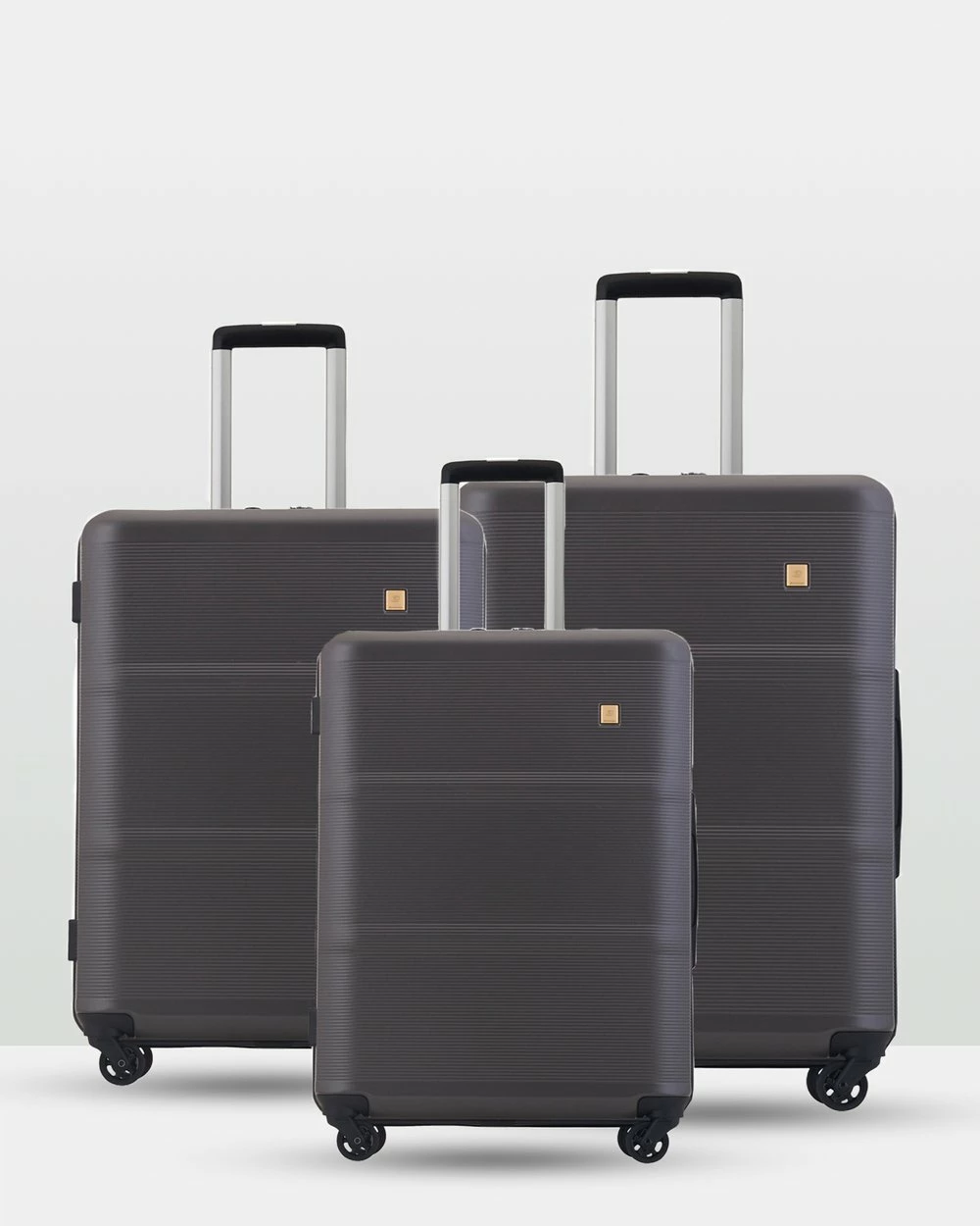 Rome Echolac 3 Piece Luggage Set by Echolac Japan is made from 100% polycarbonate material for superior strength and endurance. The linished finish is both sleek and anti-friction, resulting in a streamlined body that has been built for durability. Precision-made Hinomoto spinner wheels have been incorporated for stability and multi-directional rolling, making this luggage easy to manoeuvre. Romeβs interior features a divider pad, mesh pocket storage, and cross elastic ribbons for securing items.