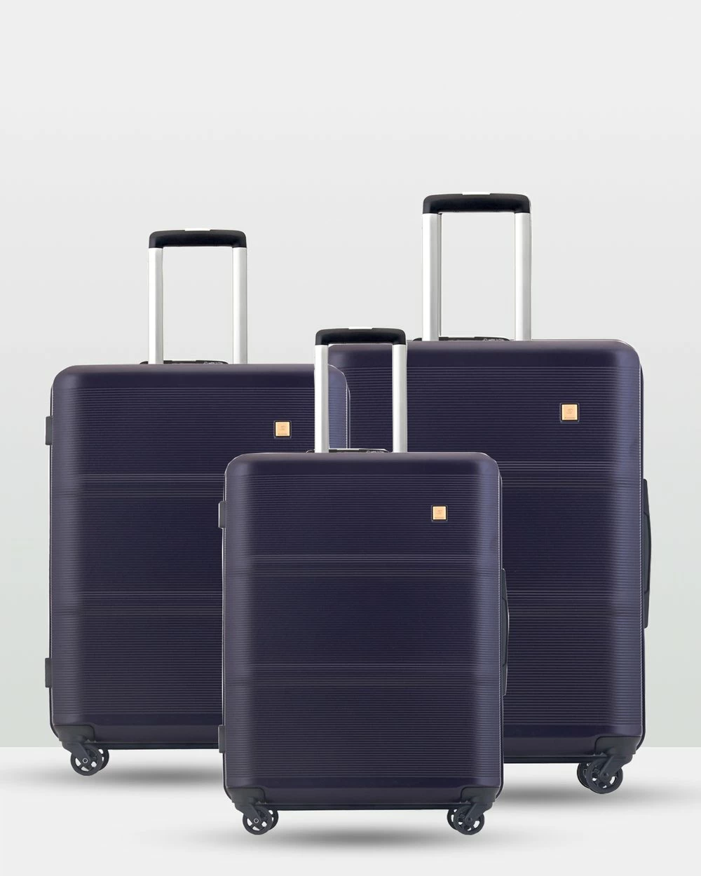 Rome Echolac 3 Piece Luggage Set by Echolac Japan is made from 100% polycarbonate material for superior strength and endurance. The linished finish is both sleek and anti-friction, resulting in a streamlined body that has been built for durability. Precision-made Hinomoto spinner wheels have been incorporated for stability and multi-directional rolling, making this luggage easy to manoeuvre. Romeβs interior features a divider pad, mesh pocket storage, and cross elastic ribbons for securing items.
