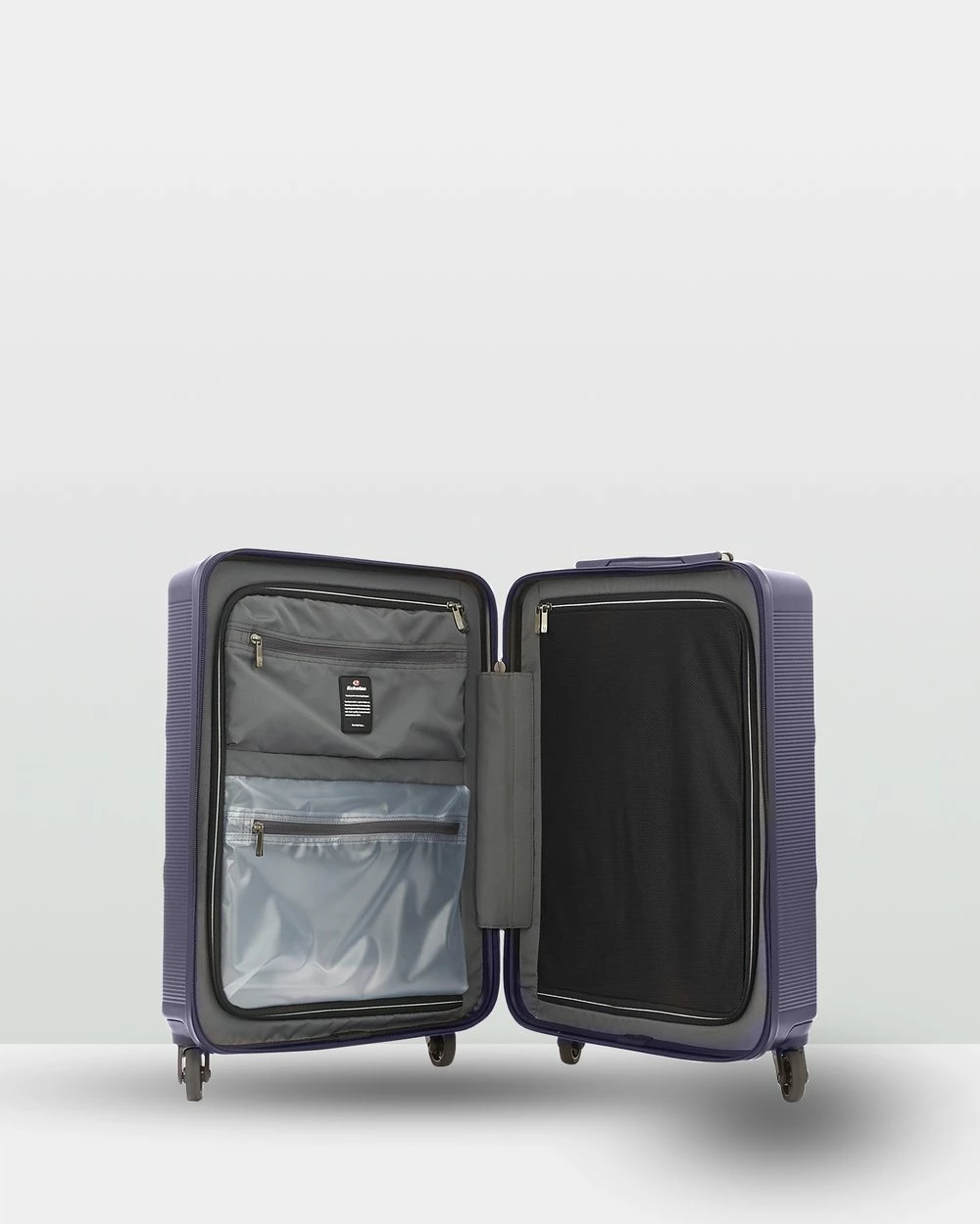 Rome Echolac Medium Case by Echolac Japan is made from 100% polycarbonate material for superior strength and endurance. The linished finish is both sleek and anti-friction, resulting in a streamlined body that has been built for durability. Precision-made Hinomoto spinner wheels have been incorporated for stability and multi-directional rolling, making this luggage easy to manoeuvre. Romeβs interior features a divider pad, mesh pocket storage, and cross elastic ribbons for securing items.