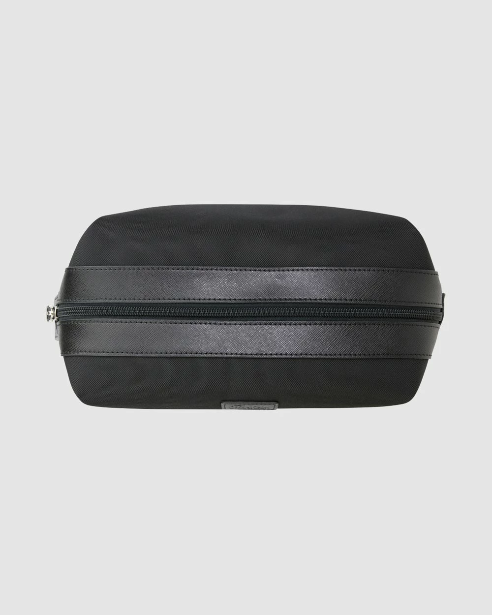 Florsheim Galway, a classic toiletry bag is constructed with a rubberised, non-slip base, and water resistant internal lining. The large volume pack features a wide mouth design for easy access to all of your bathroom bits, and a leather carry strap. This is the grooming carry-all for your travel life.