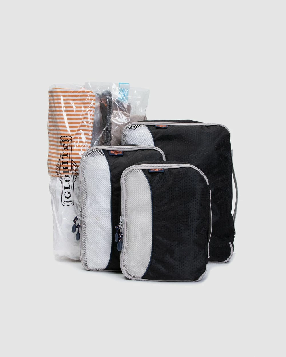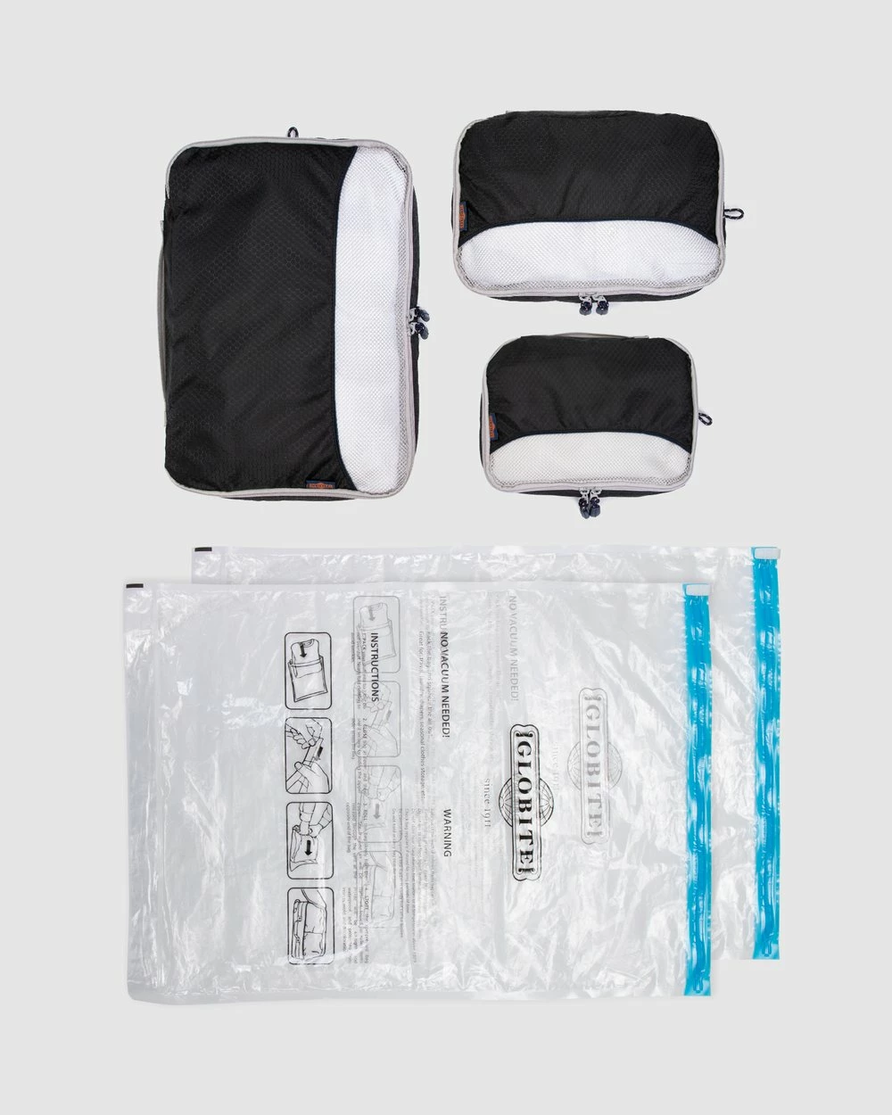 Take organisation to great heights with the ultimate Compression Bag & Packing Cube Bundle from Globite. Featuring a set of Globiteβs legendary packing cubes, teamed with a handy compression bag this dynamic team of bags will have you travelling the world with carefree ease, relaxed in the knowledge you know where absolutely everything is in your suitcase. Make travel effortless with this ship-shape and shiny organisation system, leaving you to focus on epic adventures and wanderlust whims.