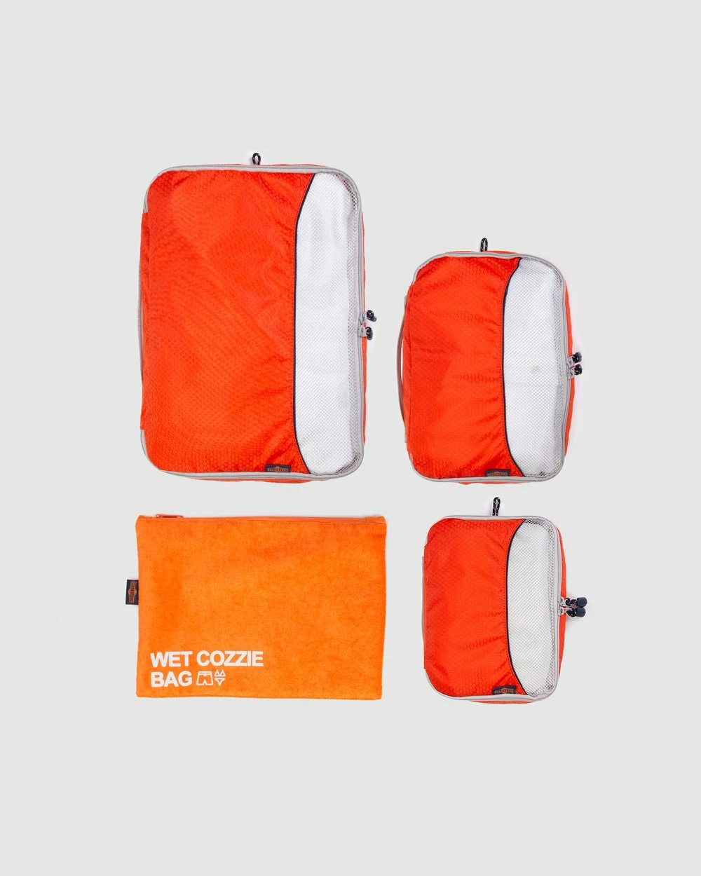 Take organisation to great heights with the ultimate Cozzie Bag & Packing Cube Bundle from Globite. Featuring a set of Globiteβs legendary packing cubes, teamed with a handy cozzie bag this dynamic team of bags will have you travelling the world with carefree ease, relaxed in the knowledge you know where absolutely everything is in your suitcase. Make travel effortless with this ship-shape and shiny organisation system, leaving you to focus on epic adventures and wanderlust whims.