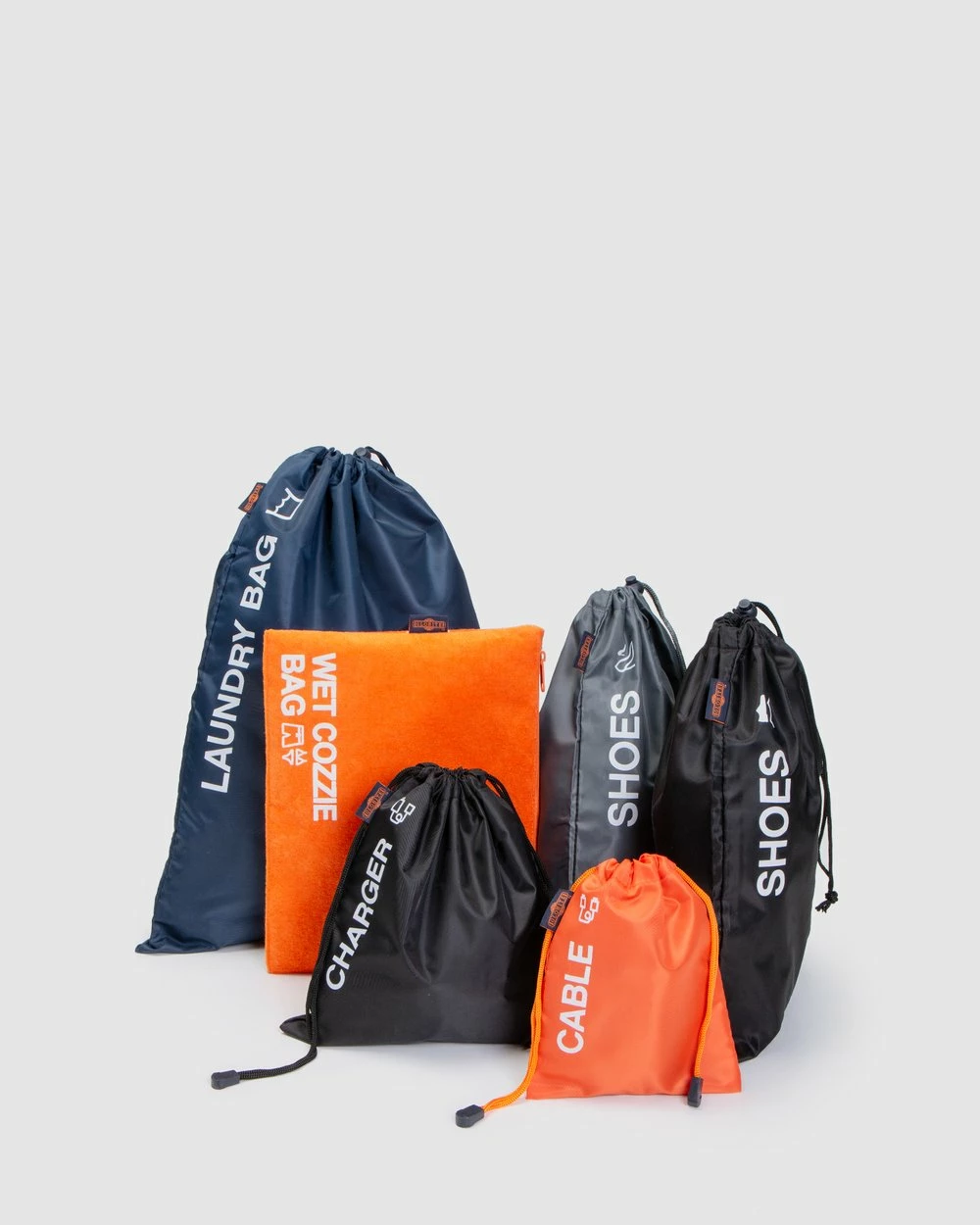 Travel like a boss with the Organisation Sensation from Globite. Featuring six separate bags, aptly labelled and colour-coded for your cables, chargers, shoes and wet swimwear β these bags are the ultimate in organised travel, or perfect for your gym or beach bag. Everything has its place with this handy collection of purpose-built bags, durable and stylish for the modern global traveller.