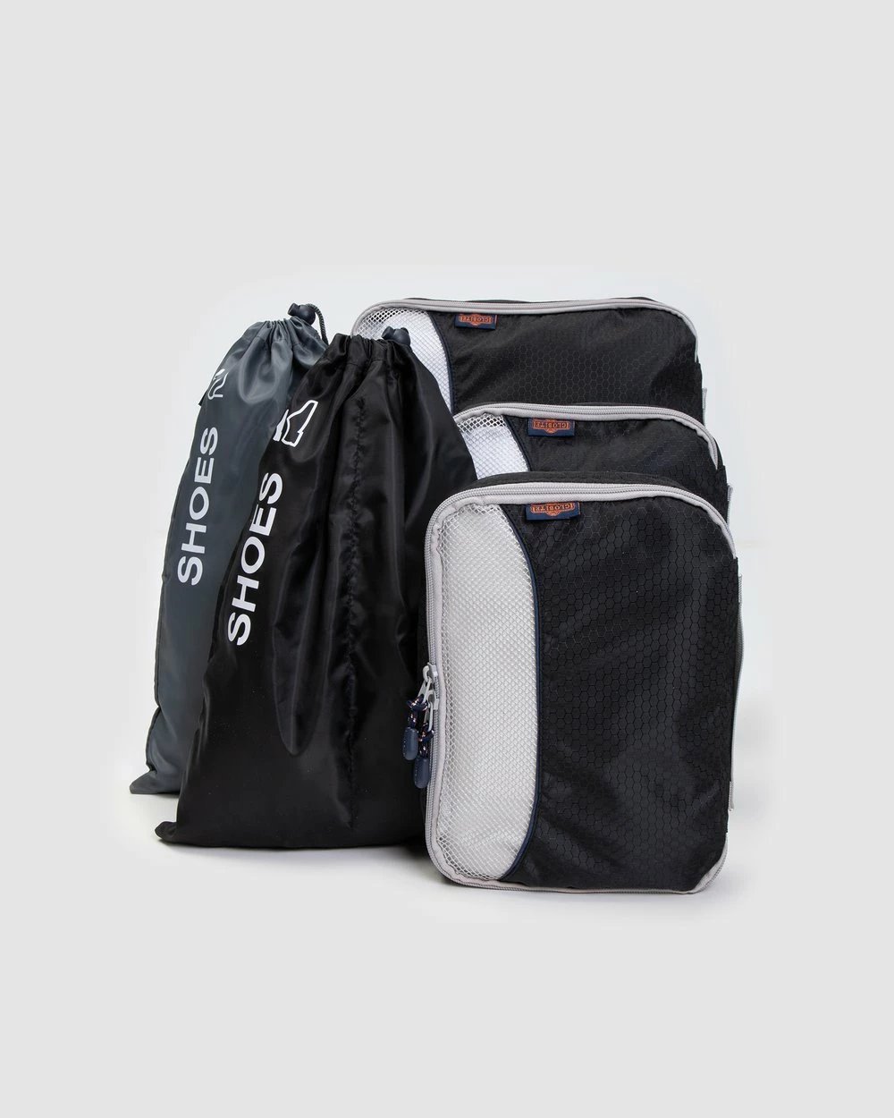 Take organisation to great heights with the ultimate Shoe Bag & Packing Cube Bundle from Globite. Featuring a set of Globiteβs legendary packing cubes, teamed with a handy shoe bag set this dynamic team of bags will have you travelling the world with carefree ease, relaxed in the knowledge you know where absolutely everything is in your suitcase. Make travel effortless with this ship-shape and shiny organisation system, leaving you to focus on epic adventures and wanderlust whims.