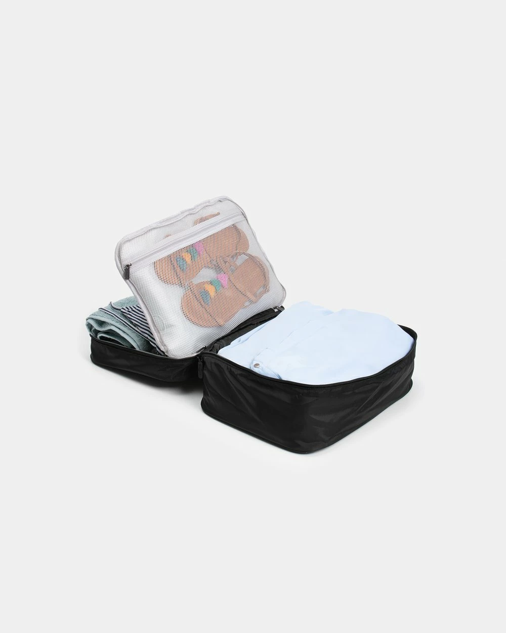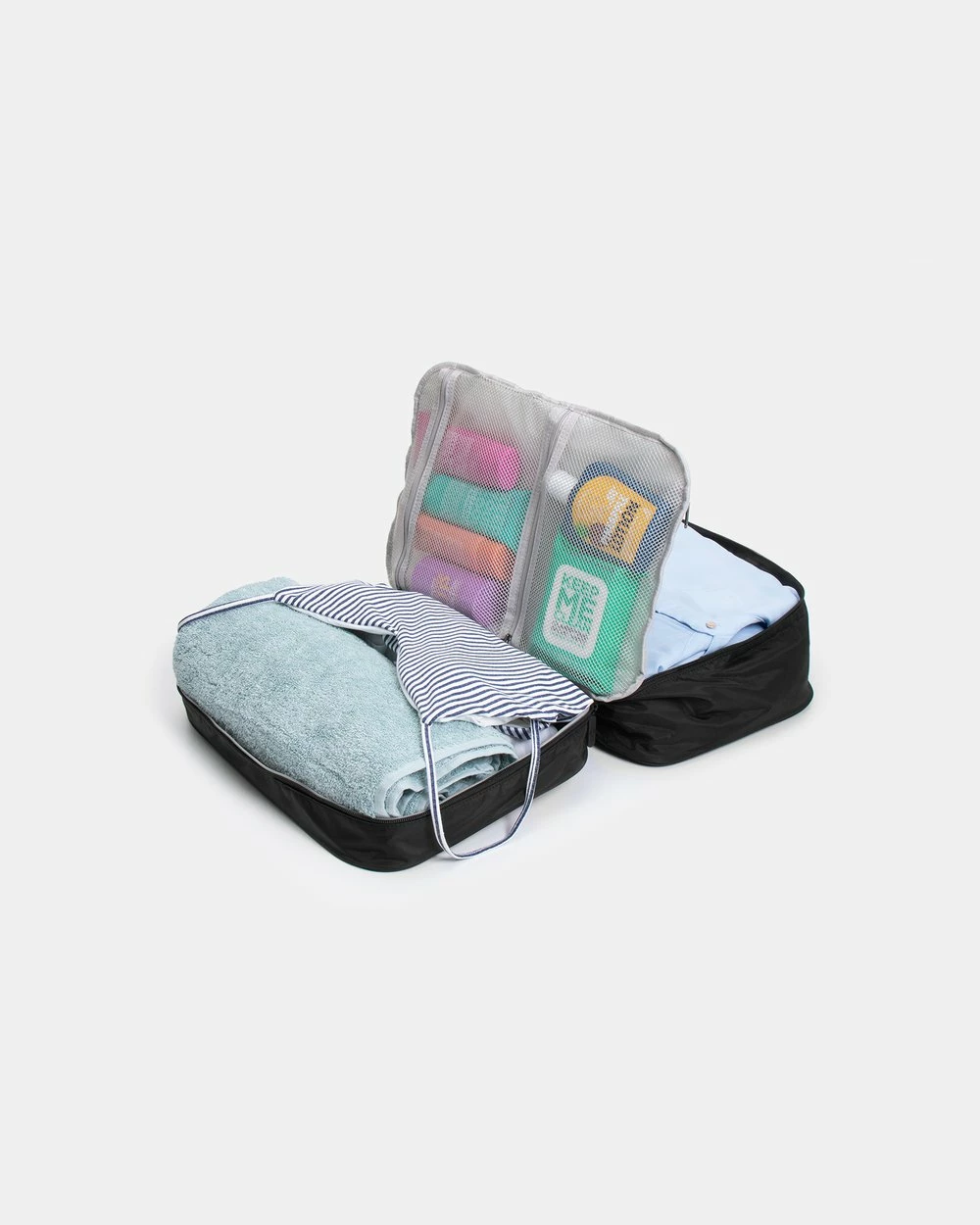 Travel like the savvy, style-master that you are with the The Weekender All In One Packing Cube from Globite; the ultimate carry-on bag with benefits. This chic and sturdy packing cube features a luxe signature lining, 2 generous compartments, 3 inner-mesh pockets, 2-way zips throughout and a handy sleeve that attaches to your luggage. This glamourous cube also doubles as an inner-suitcase organiser to keep your belongings compartmentalized, leaving you to be worry-free and on top of your game. Pre-plan your outfits and have them at the ready in each compartment in this classic piece, lovingly (and luxuriously) designed for the modern traveller.