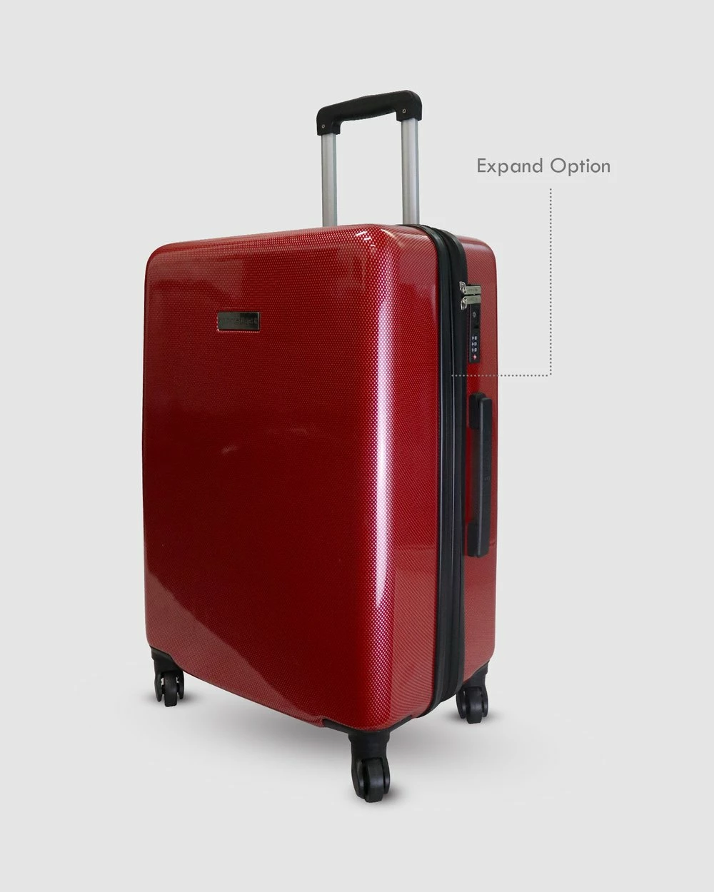 The sleek Carbon Red Series Large Suitcase by Jett Black was designed with the fashion forward jet-setter in mind. Featuring the striking carbon fibre design hard case, spinner wheels and an embedded TSA lock for up to date airport security. The striking red colour makes it unique and easy to spot at the baggage claim.