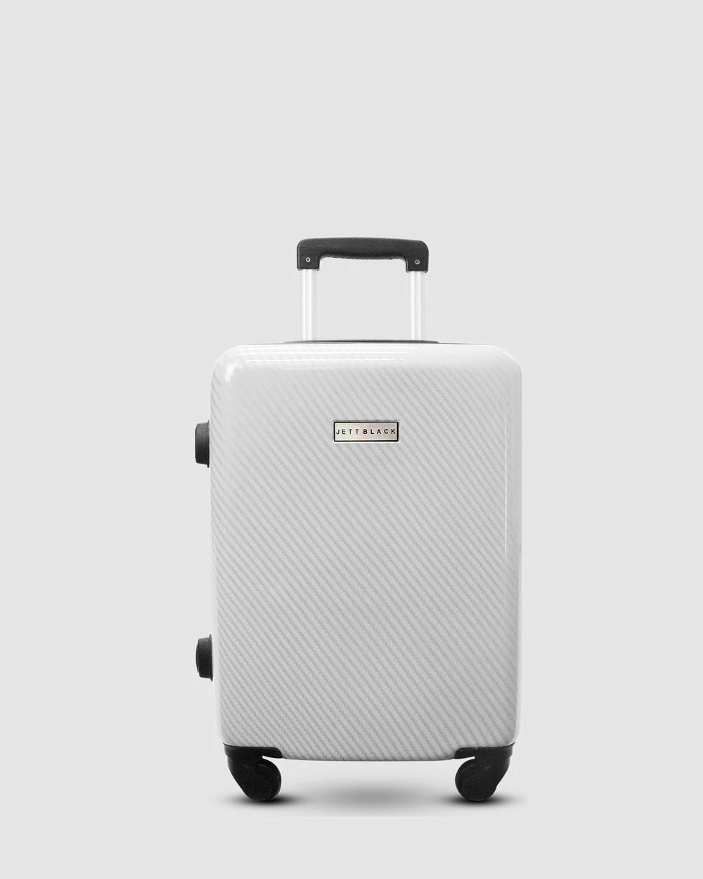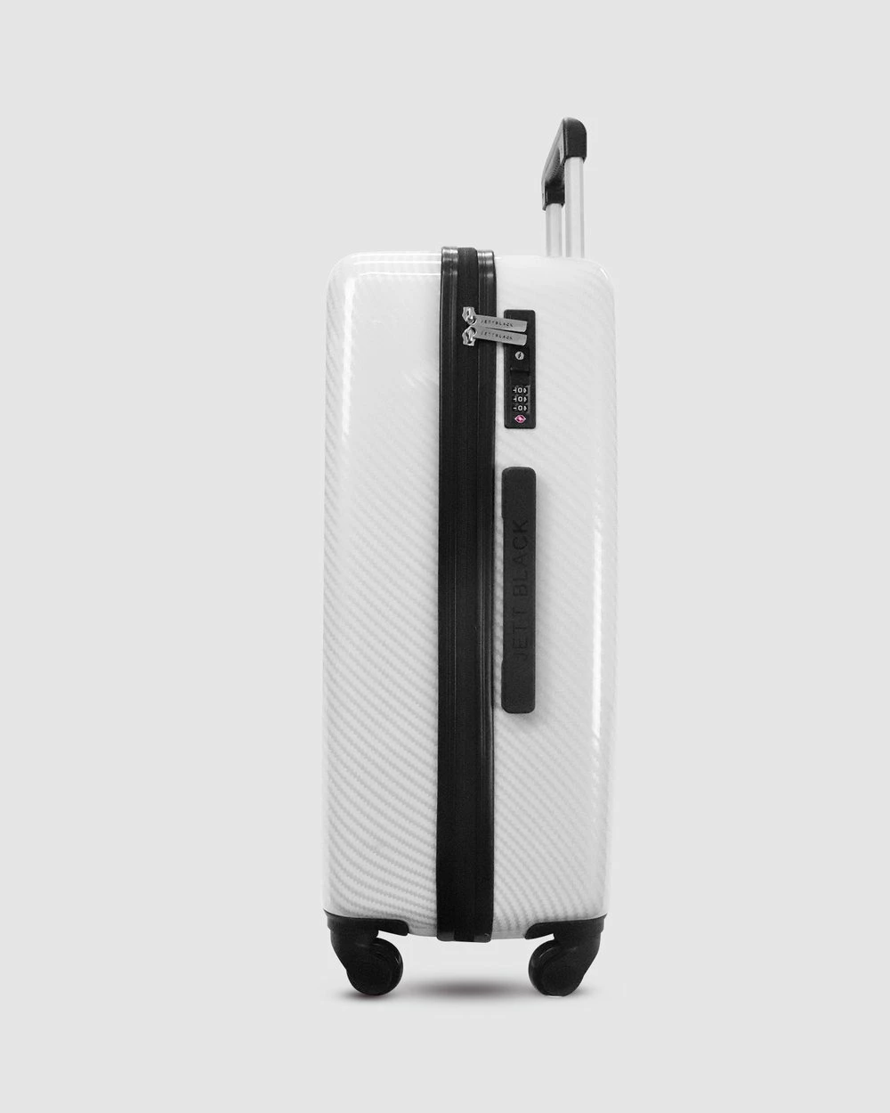 The sleek Carbon White Series Carry On Suitcase by Jett Black was designed to add to the excitement of your upcoming trip. Featuring a sleek carbon fibre design 20″ hard shell, spinner wheels and an embedded TSA lock for your peace of mind. Zoom in to view the awesome carbon fibre design. Travel is exciting and your luggage should be too!