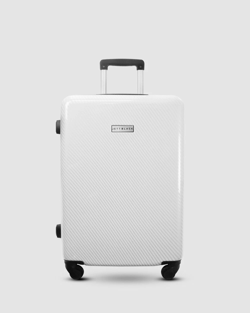 Not too big, not too small. The fresh Carbon White Series Medium Suitcase by Jett Black was designed to add to the excitement of your upcoming trip. Featuring a sleek carbon fibre design 24″ hard shell, spinner wheels and an embedded TSA lock for your peace of mind. Now all you need to do is pick a destination!