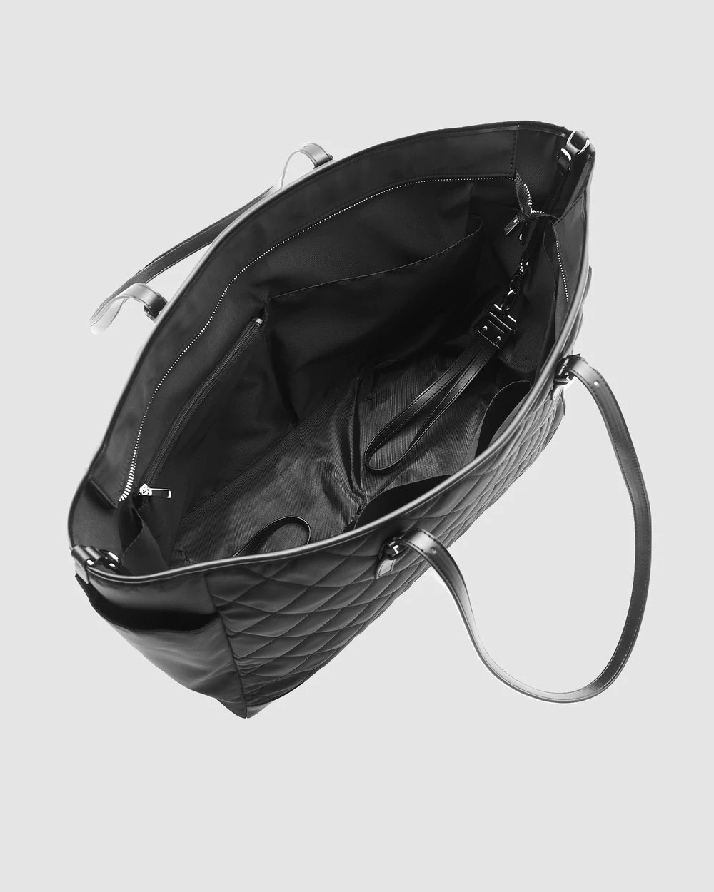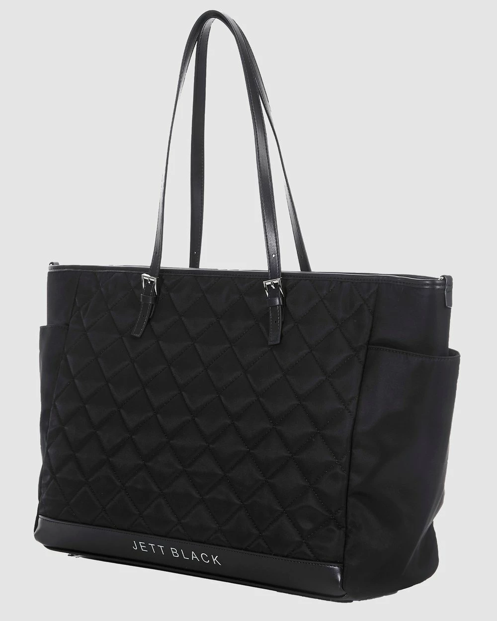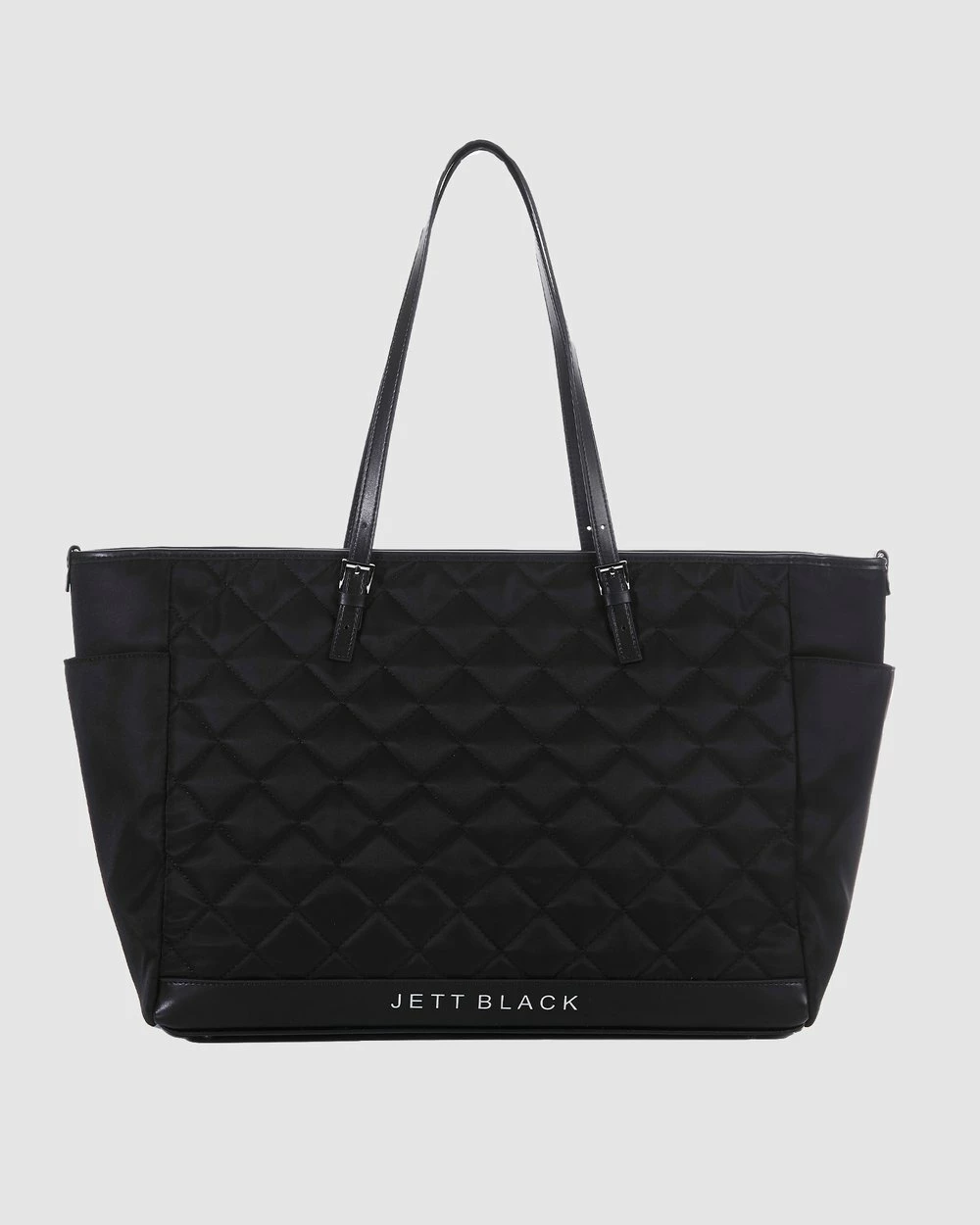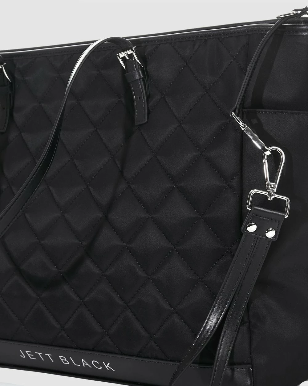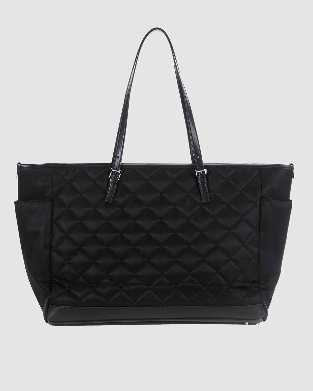 The Anaheim Baby Bag by JETT BLACK is the stylish carry all perfect for when on the go with baby. Featuring a sleek nylon quilted design, zip closure and lots of compartments for keeping bottles, diapers, wipes and spare clothes organised and easy to find. Comes complete with baby change mat and stroller straps.