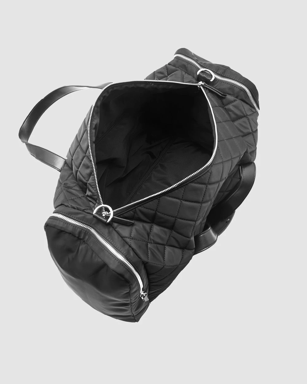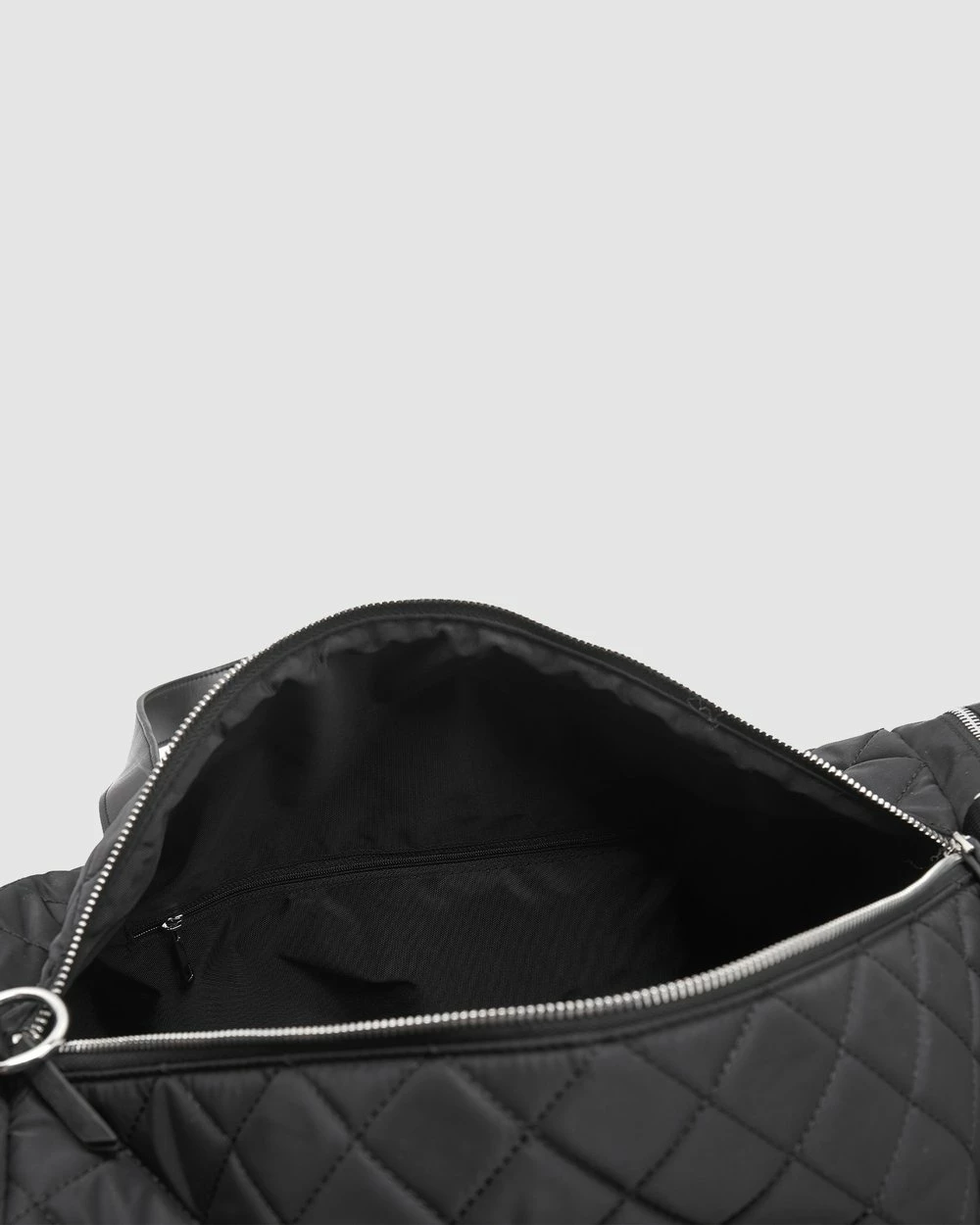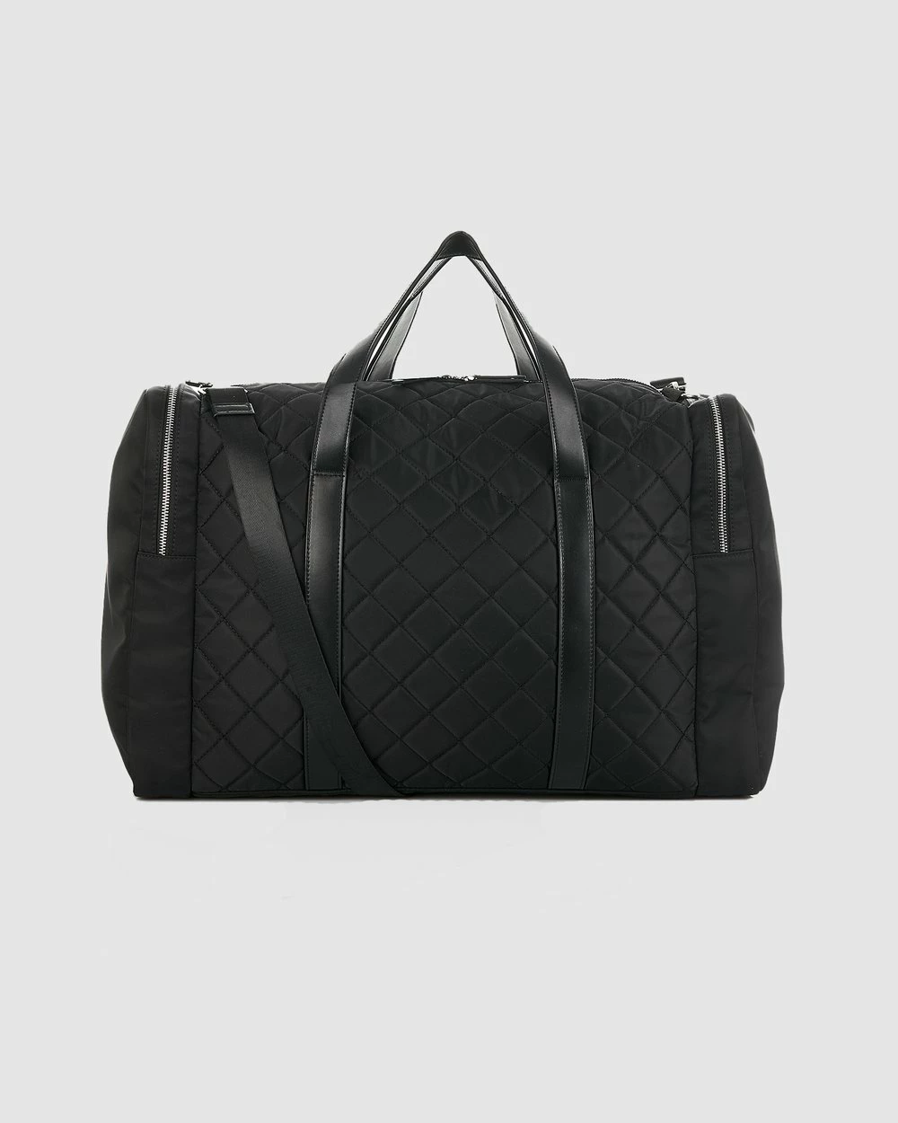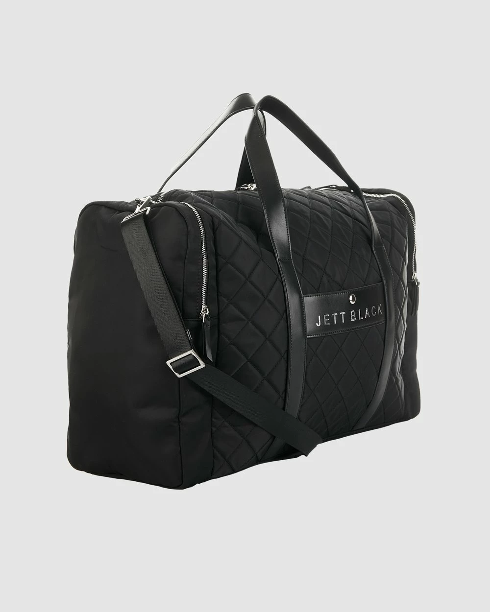 The London Duffle Bag by Jett Black is this season’s must have “take everywhere” duffle that will hold everything you need for sleepovers, weekend getaways, work, workouts, and more. Featuring a sleek quilted nylon exterior with genuine leather accents and metallic silver hardware will have you taking off in style!