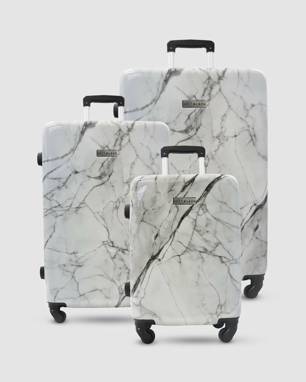 This sleek white marble look luggage was designed with the jet-setter in mind. Comprising of three luggage cases that will cover all your travelling needs. The White Marble Series from Jett Black is the freshest luggage to pack and take with you on your next vacation.