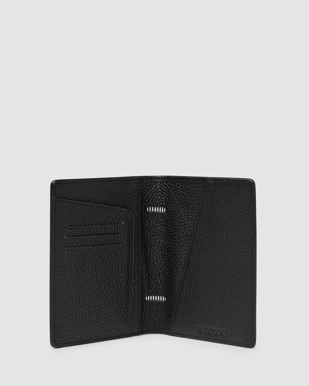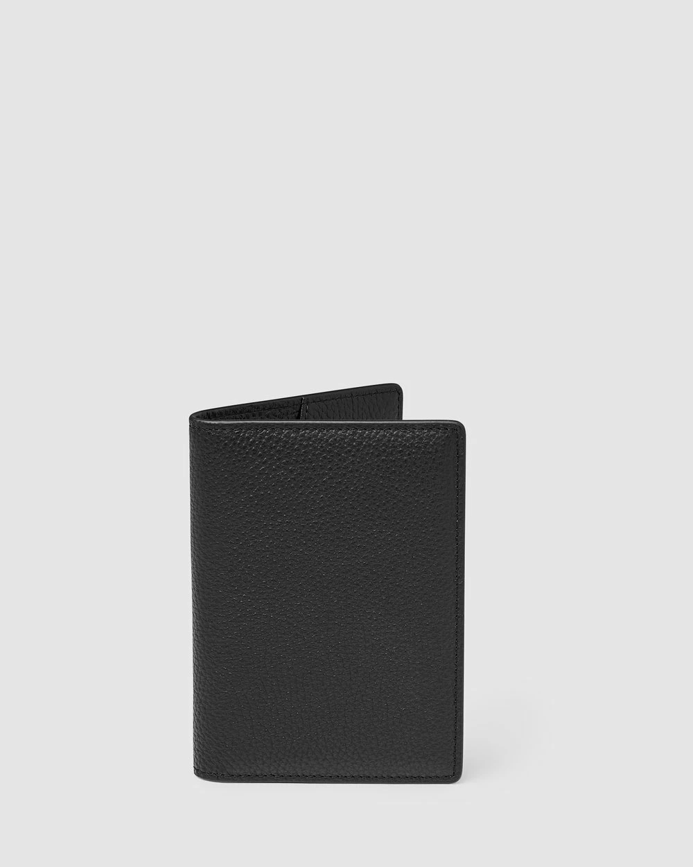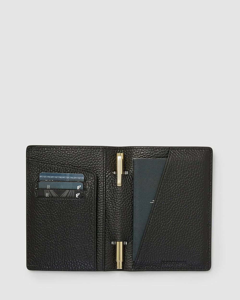 Kinnonβs Earle Passport Holder is stylish, compact and functional. Featuring clever spaces for your passport and all of its companions, this Italian pebble leather essential in black is sure to elevate every seasoned travellers airport ensemble.