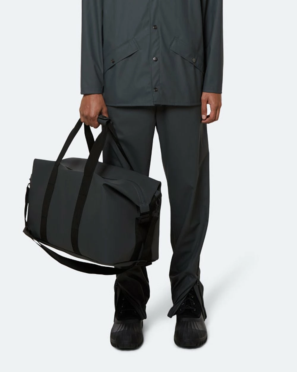 Perfectly sized for a weekend away or an overnight trip, the RAINS Weekend Bag has one main compartment closed with a waterproof zip to