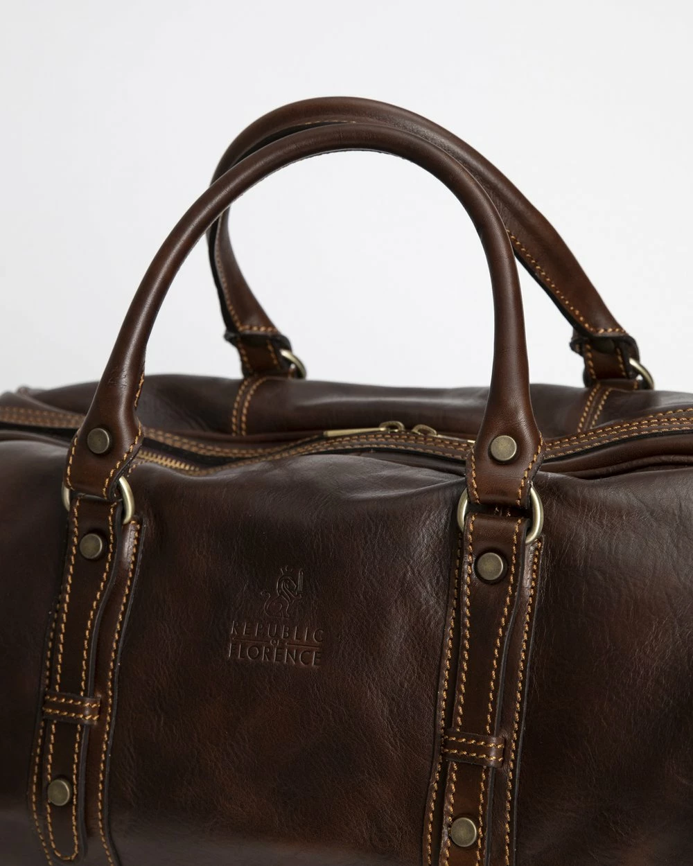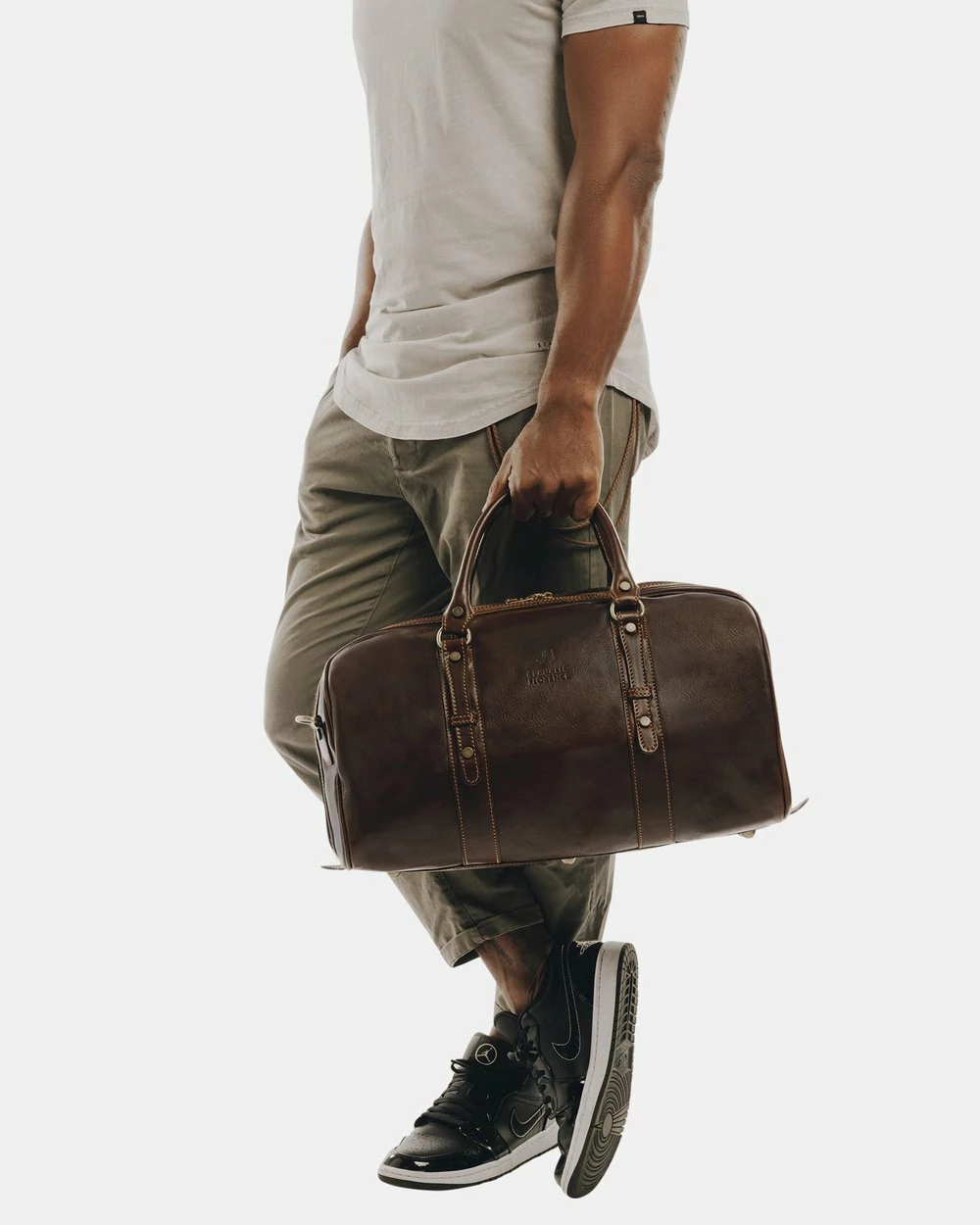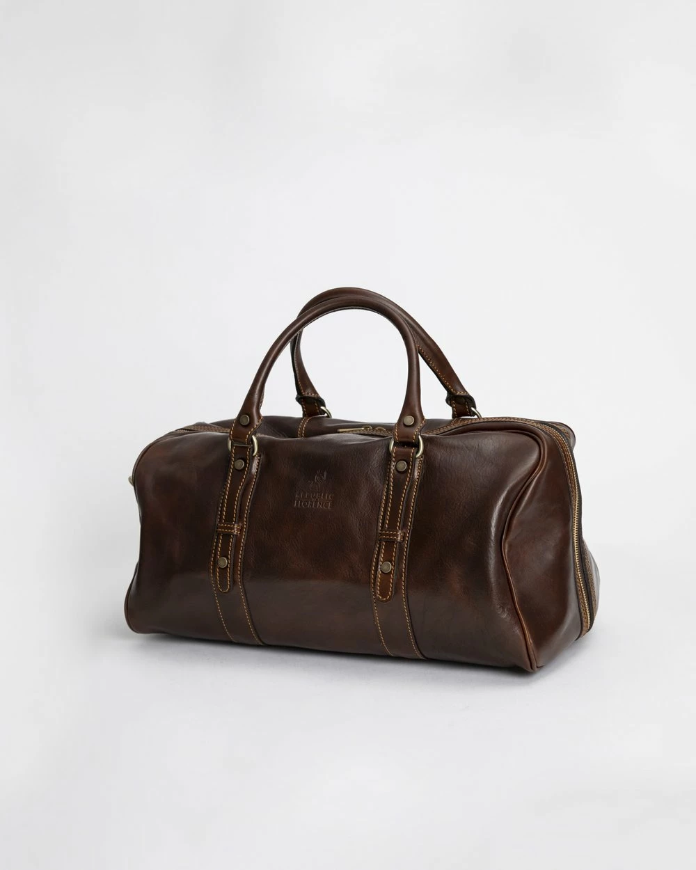 The Polo Small overnighter is made in Italy by Italian artisan label Republic of Florence. This small duffle is the small version of the Polo Medium and Marco Polo duffle bag. Crafted from Full-Grain Vegetable Tanned leather, the Polo small is ideal for an overnight stay or a gym run. It also creates a beautiful set with its bigger brothers Polo Medium and Marco Polo duffles.
