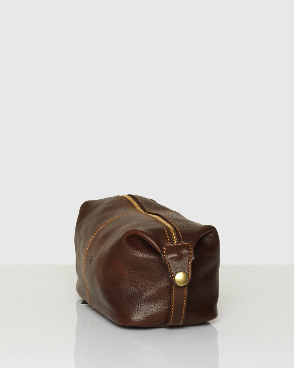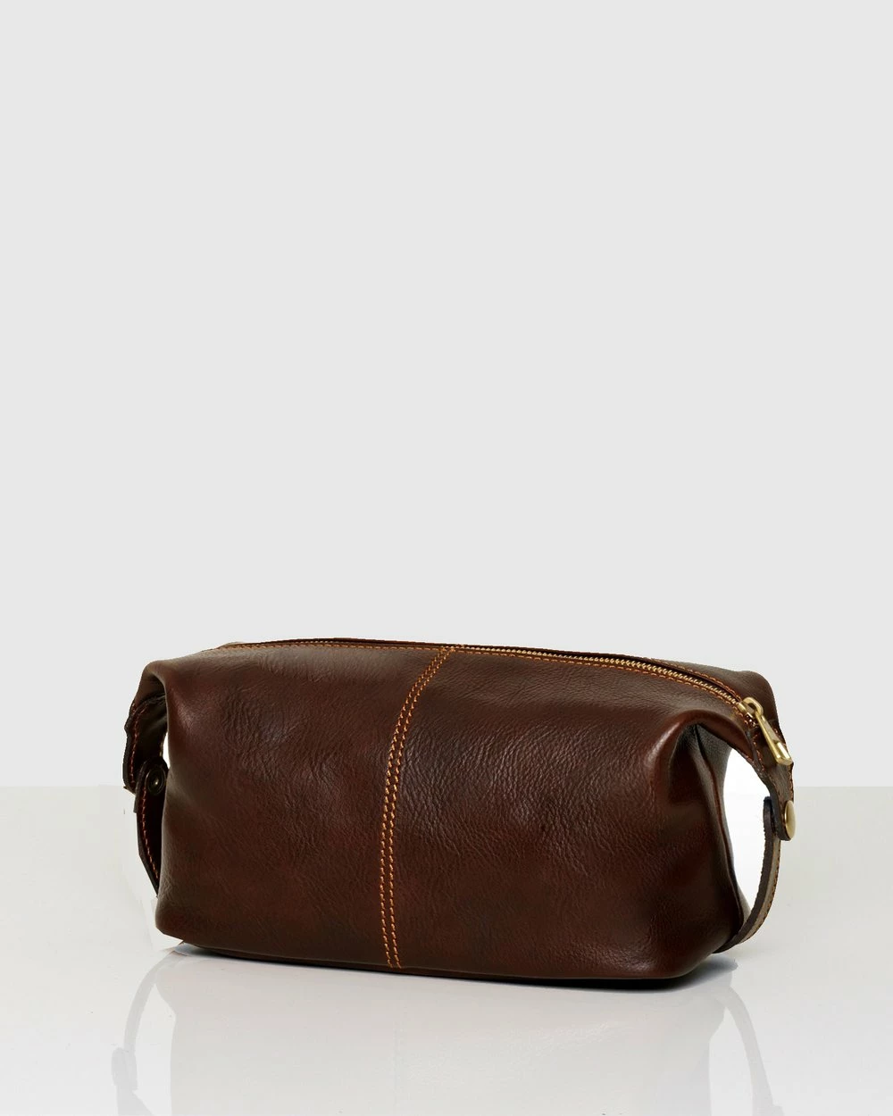 The Tree Leather Dopp kit is hand-crafted in Italy from Full-grain vegetable tanned leather. The Tre will carry all your toiletry essentials for travel. This toiletry bag features wide zip opening for easy access, two clipped sides to attach it to towel rails or carry easily.