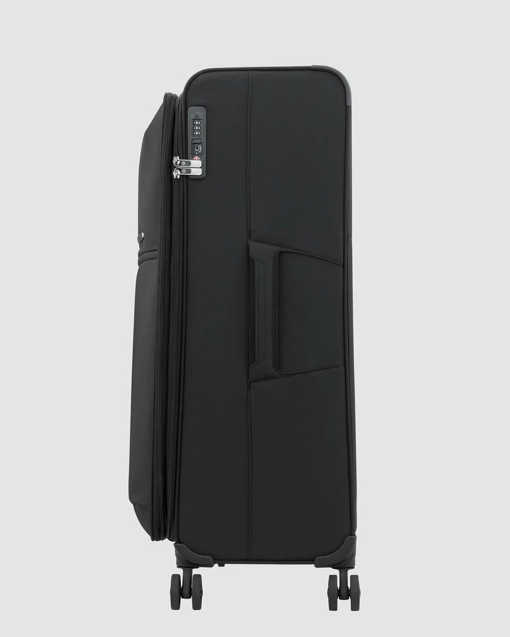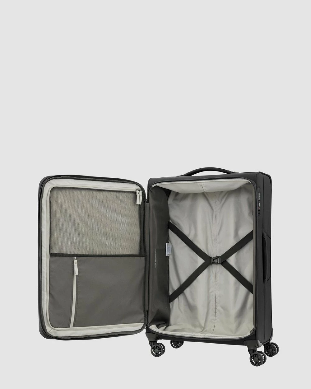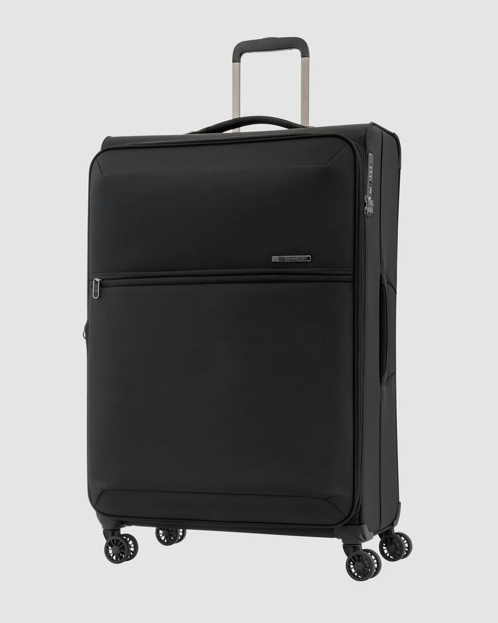 Fusing function and sleek design, the 72 Hours DLX 78cm Spinner Expandable Case by Samsonite is crafted from an ultra-lightweight nylon construction and features an extendable trolley handle with adjustable heights, internal compression straps to secure your contents and four multi-directional spinner wheels.