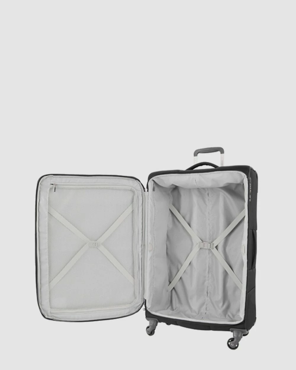 Designed with a lightweight, durable and expandable nylon construction, the Base Boost 2 Spinner Expandable 71cm Case by Samsonite features an extendable trolley handle, a built-in TSA combination lock and multi-directional spinner wheels.