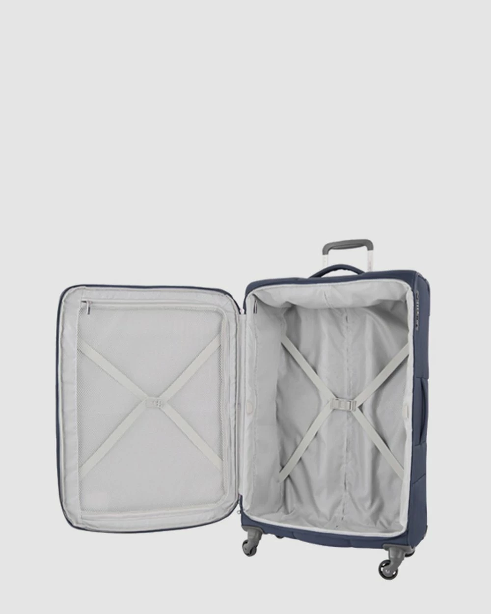 Designed with a lightweight, durable and expandable nylon construction, the Base Boost 2 Spinner Expandable 78cm Case by Samsonite features an extendable trolley handle, a built-in TSA combination lock and multi-directional spinner wheels.
