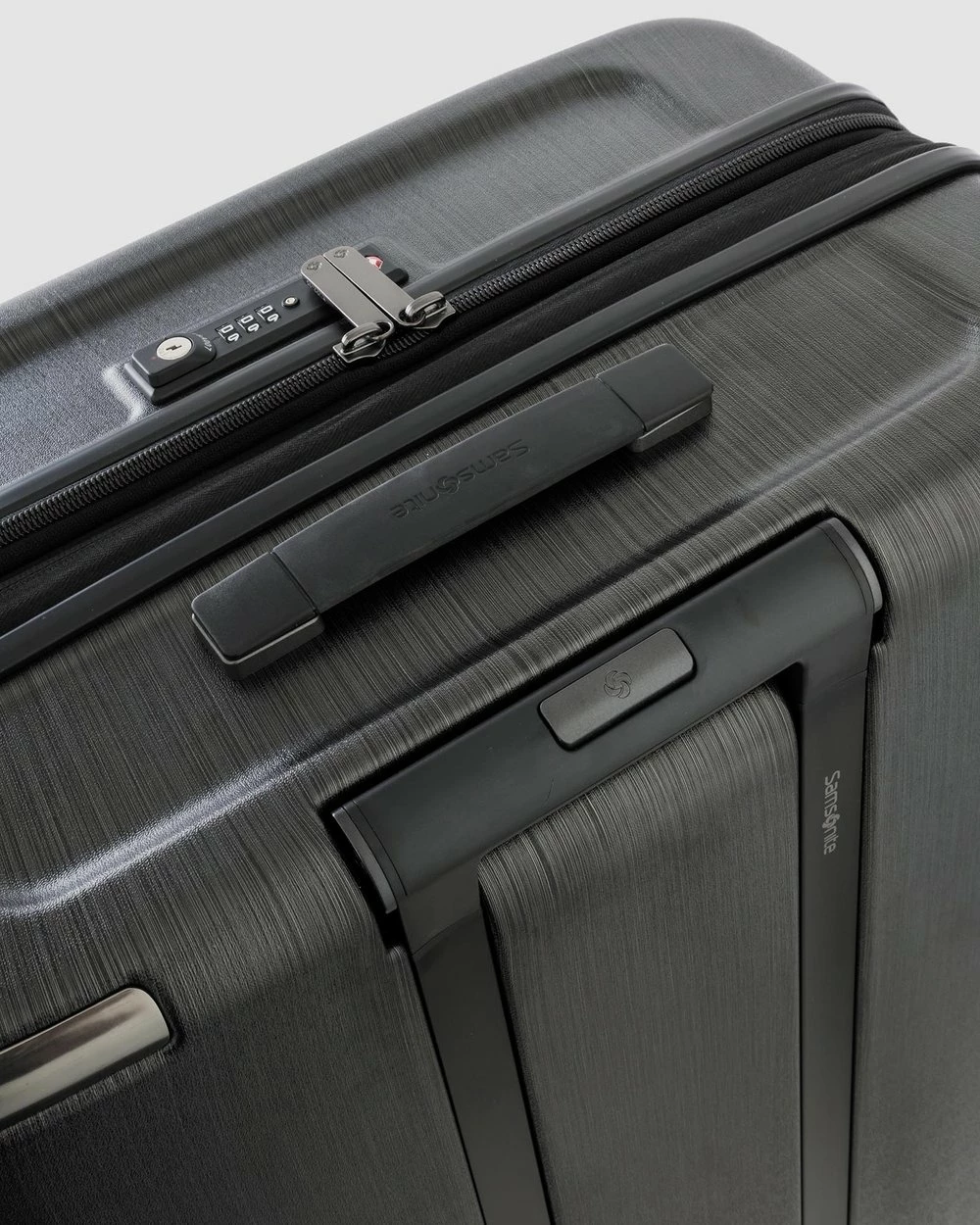 Samsonite seamlessly combines functionality and luxurious design with the Evoa Spinner 69cm Expandable Suitcase, featuring a sleek brushed hard-case shell, anti-theft zip fastenings and Aero-Trac suspension wheels for reduced noise and vibration.