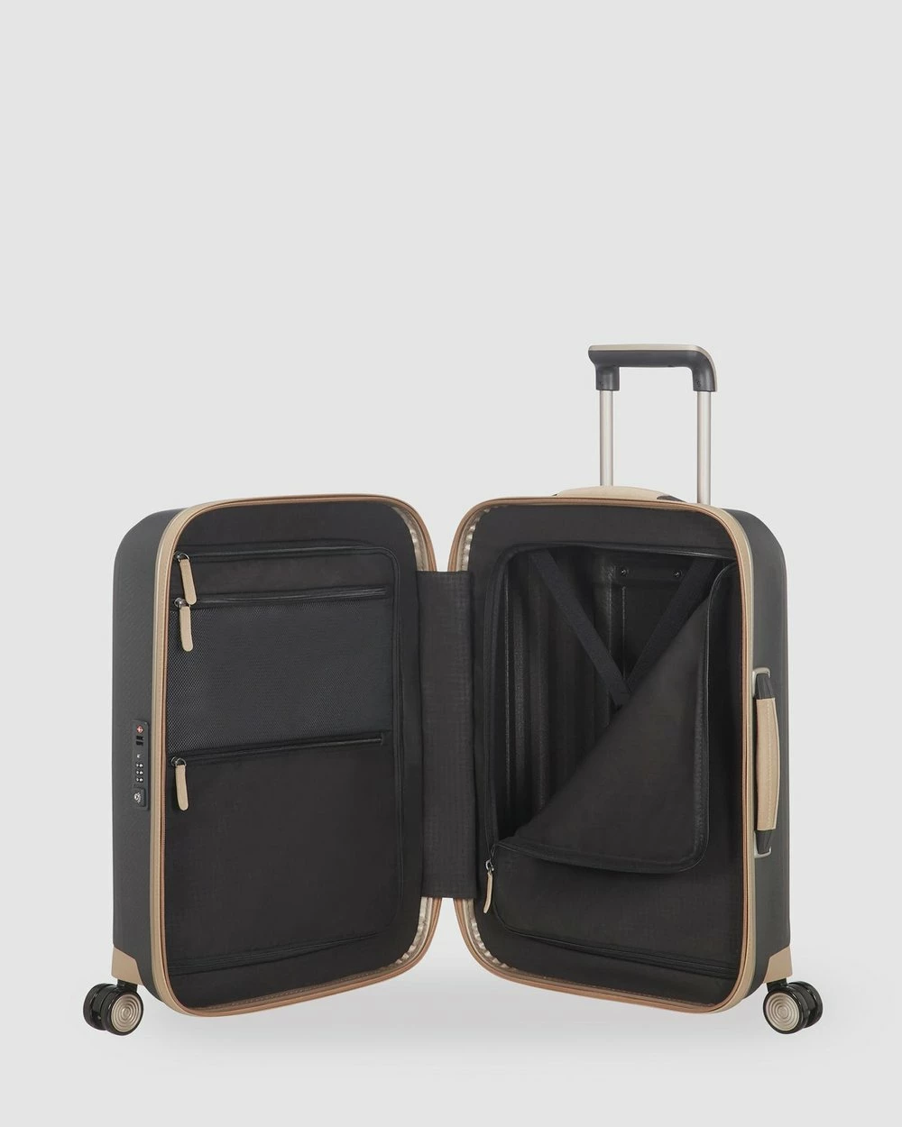 – Lightweight, scratch-resistant Curv® woven hard-shell; Acalantra trims; fully lined