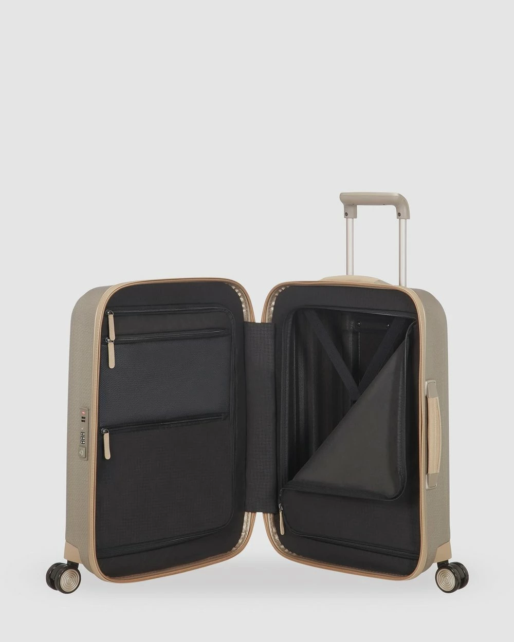 – Lightweight, scratch-resistant Curv® woven hard-shell; Acalantra trims; fully lined