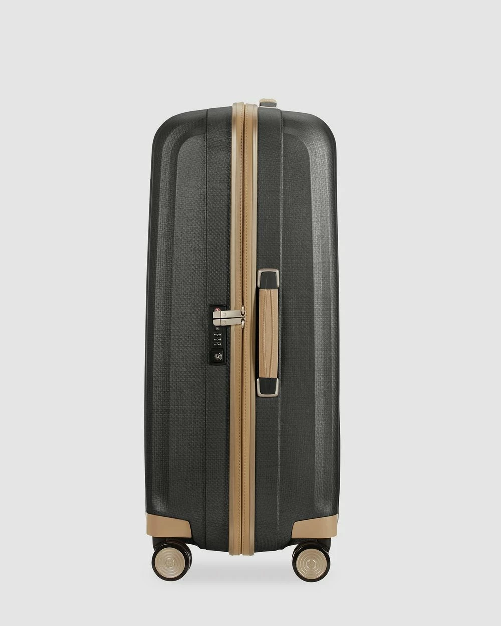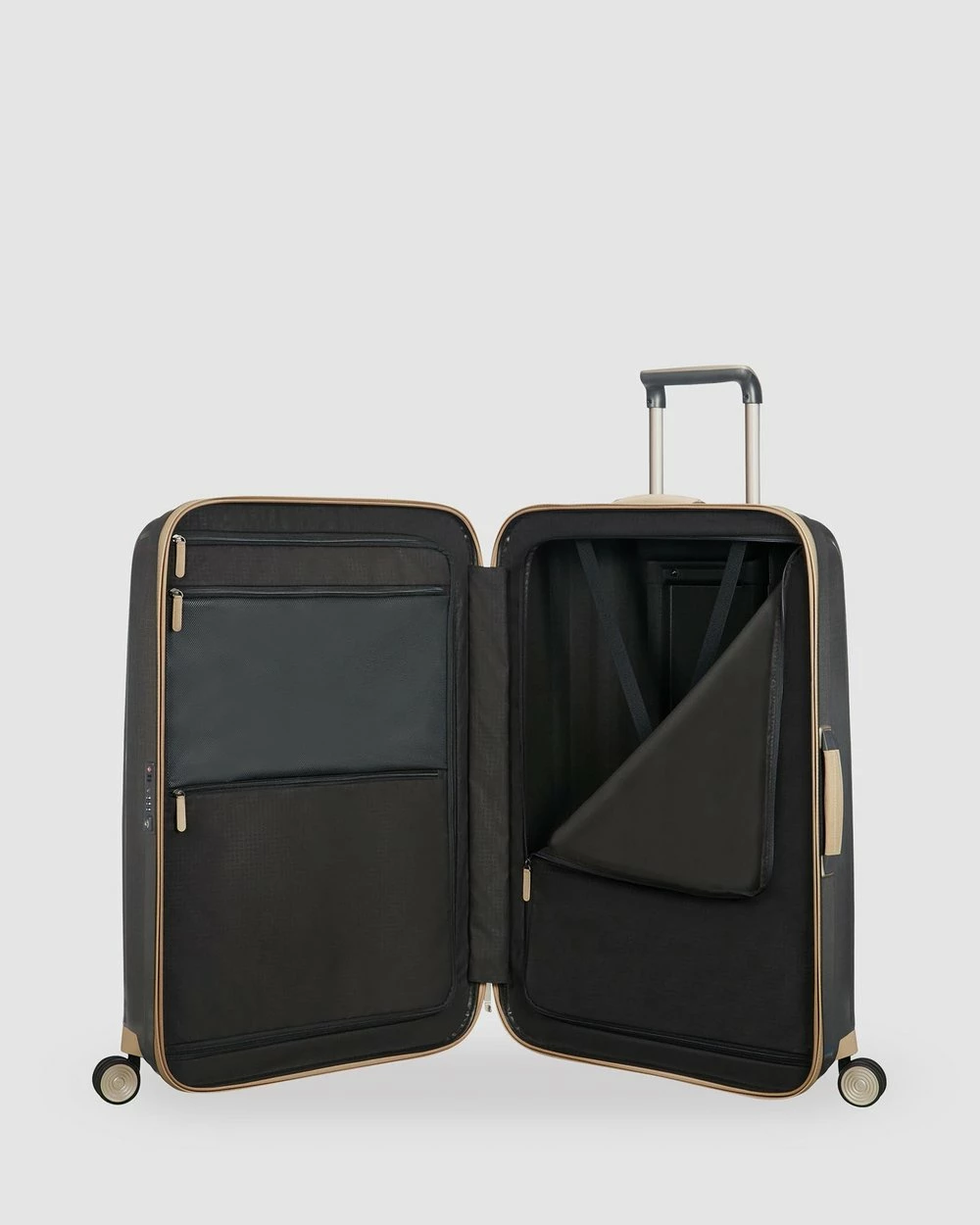 – Lightweight, scratch-resistant Curv® woven hard-shell; Alacantara trims; fully lined