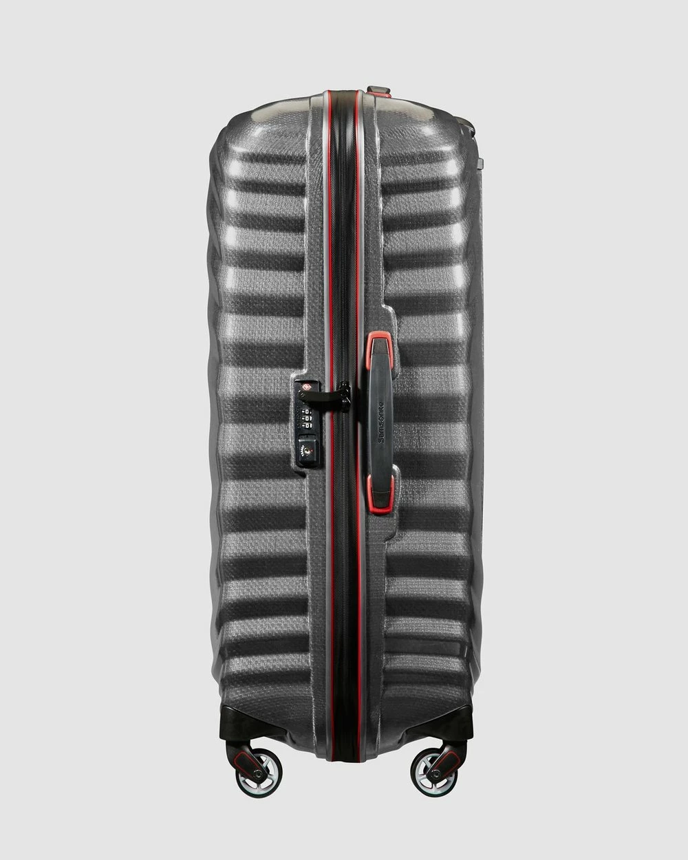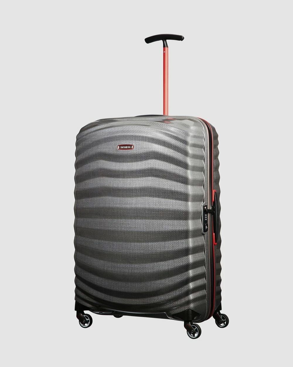 Designed for lively tech-savvy travellers, the Lite-Shock Sports 75cm Spinner Case by Samsonite offers a three-dimensional durable construction with water-resistant zips and a three-digit TSA combination lock.